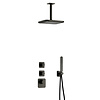 Hotbath Gal Regendoucheset IBS40 | Geborsteld Gunmetal PVD | Staaf handdouche | 22cm Hoofddouche | 15cm Plafondbuis | Handdouche met wandhouder