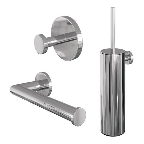 Kies je voor deze 3-in-1 accessoire set, dan heb je in één keer de belangrijkste toiletaccessoires in huis. Dit is vooral handig als je een nieuwe ruimte inricht of bestaande accessoires wilt vervangen door een samenhangend geheel. De chroomafwerking is een veilige keuze als je niet zeker weet welke kleur het beste past, omdat het zich makkelijk laat combineren. Heb je echter een uitgesproken kleurthema in jouw badkamer, dan kun je ook kiezen uit de andere beschikbare afwerkingen. Minder praktisch is deze set als je al losse accessoires hebt die qua kleur of stijl sterk afwijken, of als je specifieke wensen hebt voor bijvoorbeeld een afwijkend formaat.