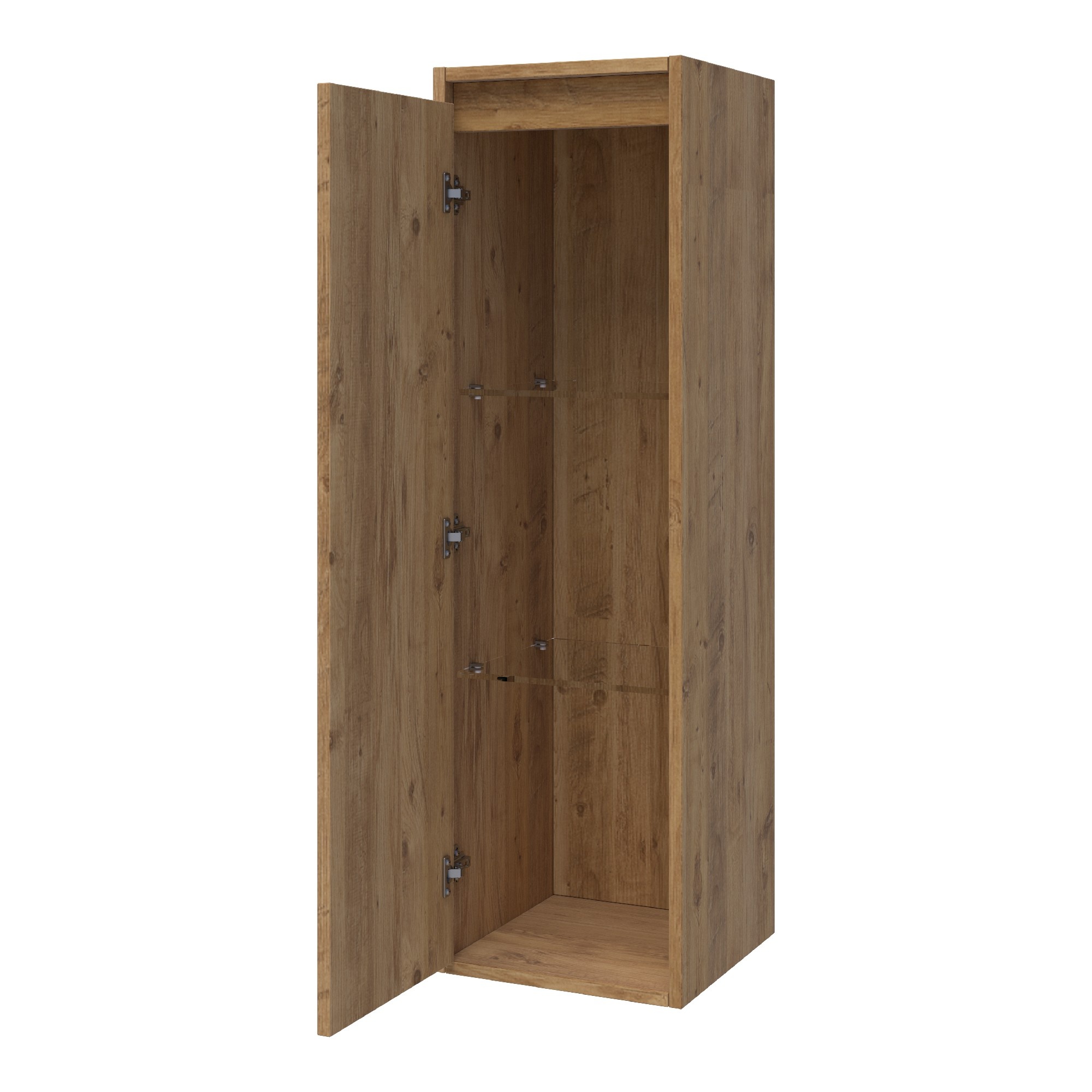 De kast biedt een naadloze integratie met zijn deur die zich perfect tussen de corpus bevindt, waardoor een minimalistisch design ontstaat. Met een softclosing deur en twee praktische schappen creëert het drie handige opbergruimtes, terwijl de rechte bovengreep zorgt voor een moeiteloze opening.