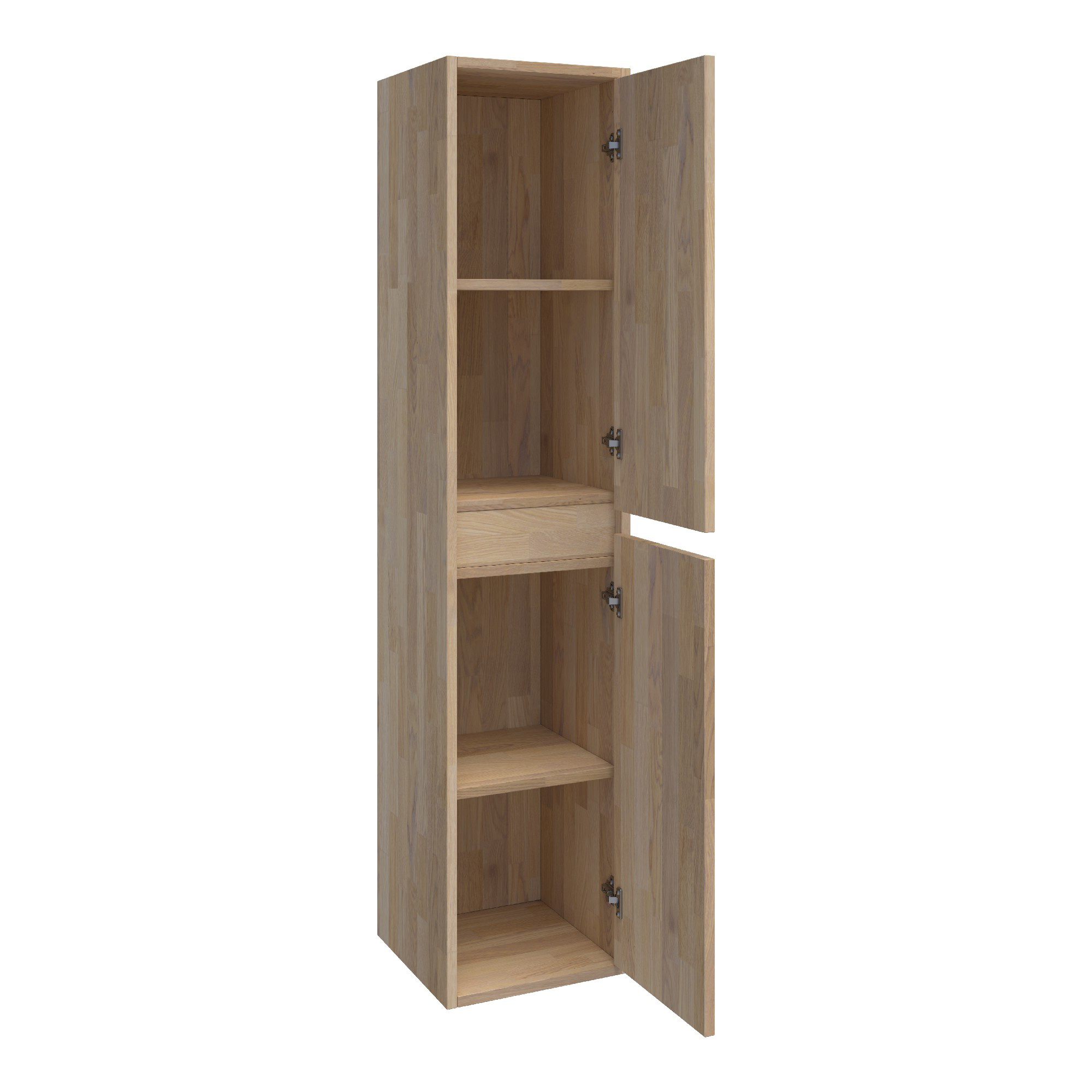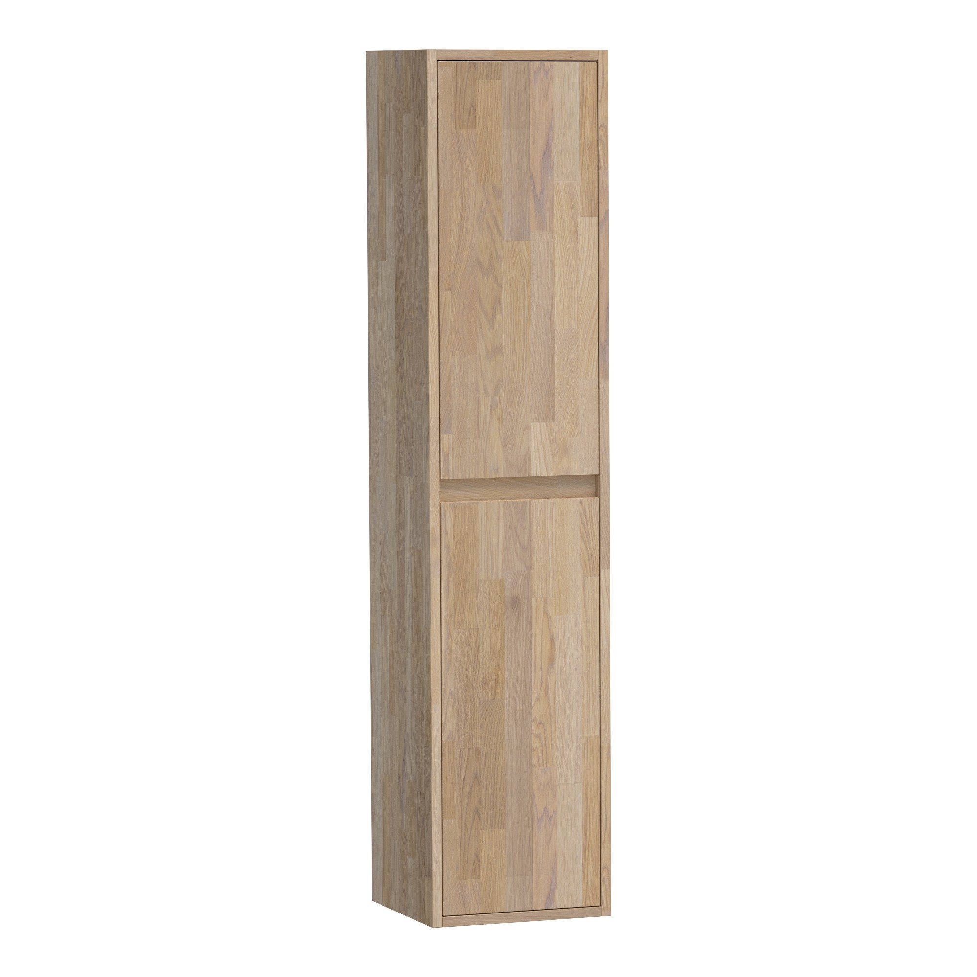 De Brauer Adore serie, met deze hoge kast als prachtig voorbeeld, brengt een vleugje natuurlijke charme naar je badkamer. Stel je voor dat je 's ochtends je badkamer binnenstapt en begroet wordt door de rustige aanwezigheid van massief eiken, zorgvuldig bewerkt tot een subtiele vingerlas in grijs. Deze kast, met artikelnummer HK-AD160VEG, biedt niet alleen een zachte, ingetogen uitstraling maar ook voldoende ruimte voor al je badkamerbenodigdheden.