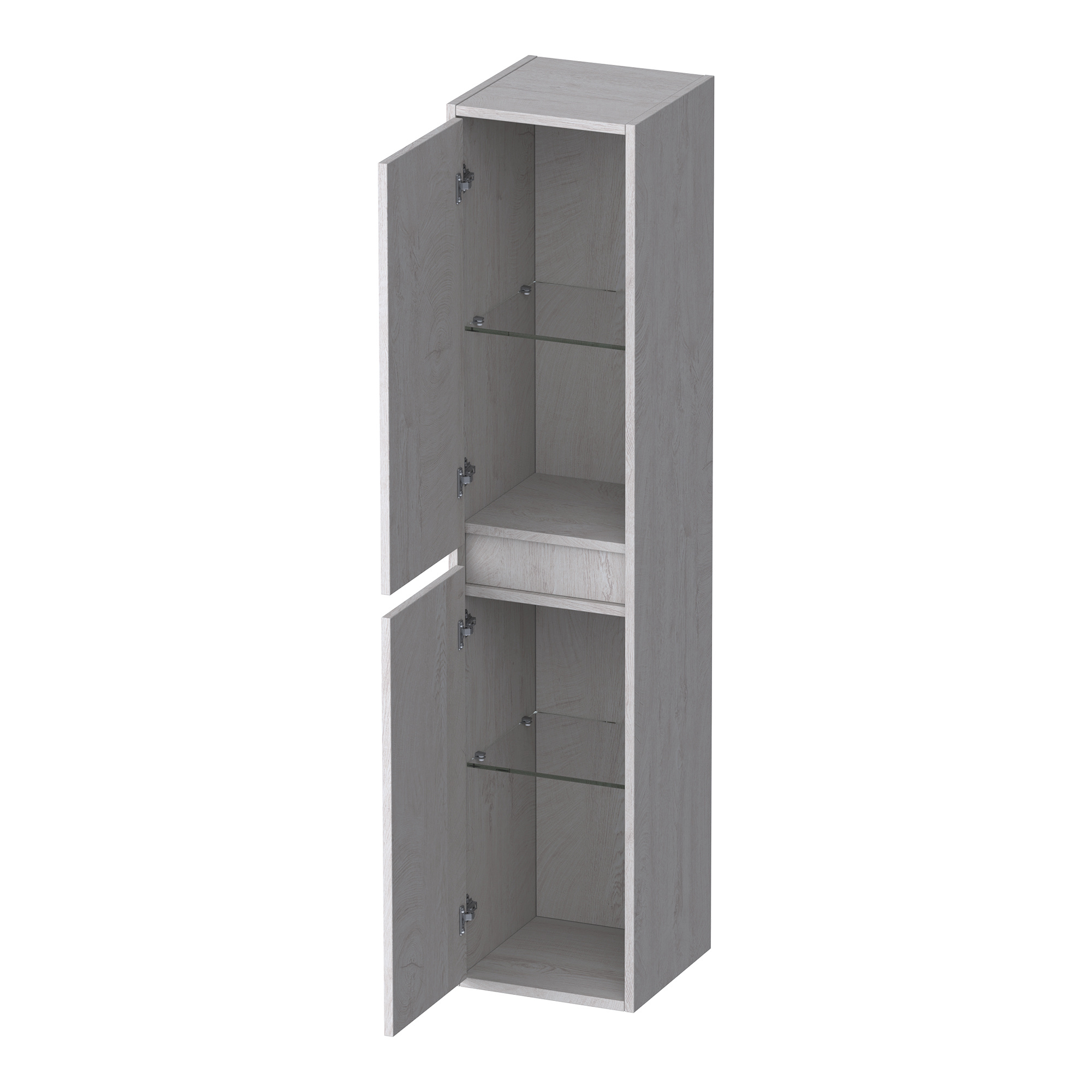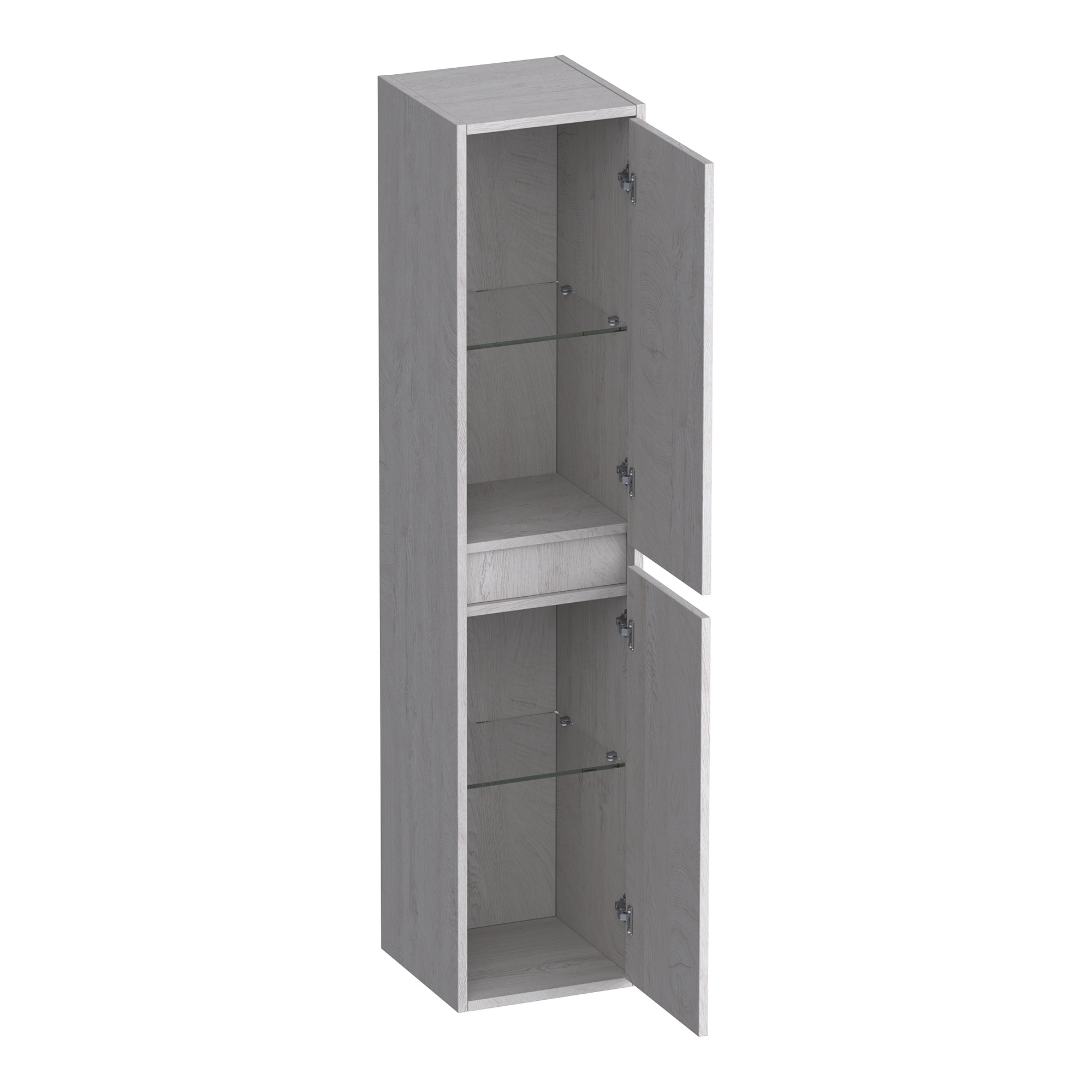 De Brauer Adore hoge kast biedt een elegante opbergruimte dankzij de glazen legplanken die het interieur efficiënt indelen. Met zijn mat afgewerkte oppervlak in forest seashell voegt het een serene sfeer toe aan je badkamer. De kast kan eenvoudig worden aangepast aan jouw ruimte door de deuren links of rechts te monteren.