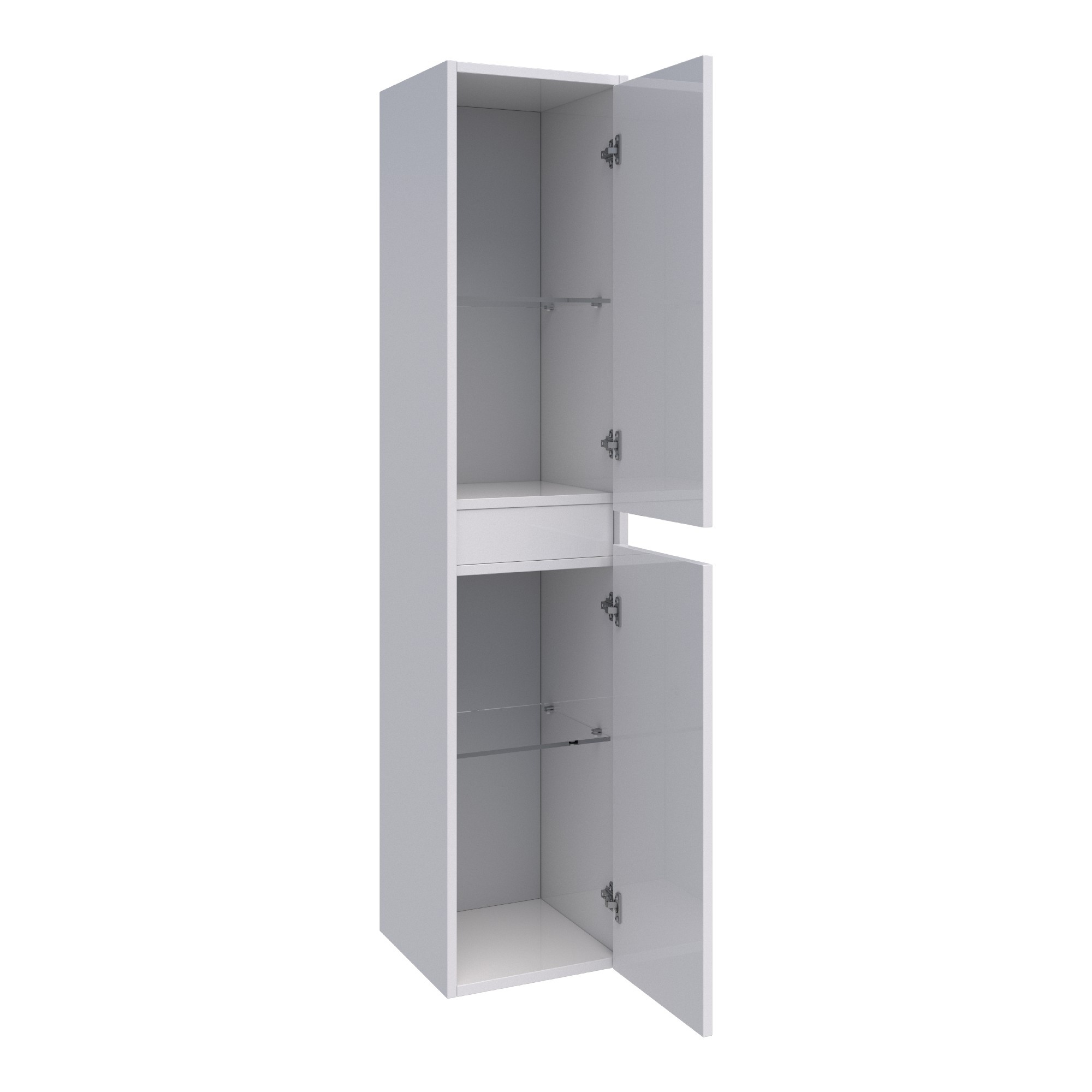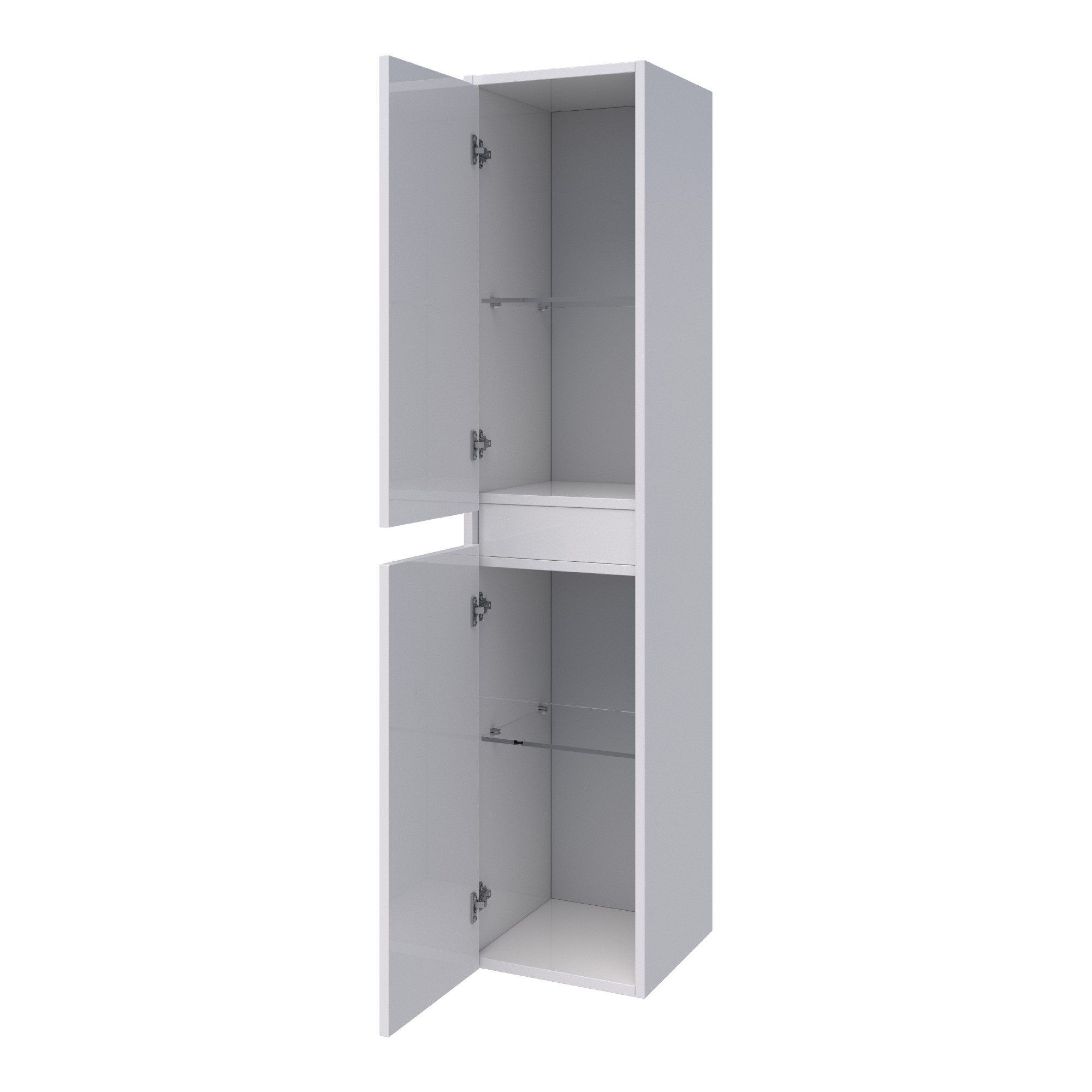 De Brauer Adore hoge kast is een veelzijdige toevoeging aan je badkamer, perfect voor het organiseren van je spullen op een stijlvolle manier. De twee glazen legplanken creëren vier ruime vakken, waardoor je al je badkamerbenodigdheden overzichtelijk kunt opbergen. Deze hangende kast houdt de vloer vrij en oogt daardoor rustig en ruimtelijk.