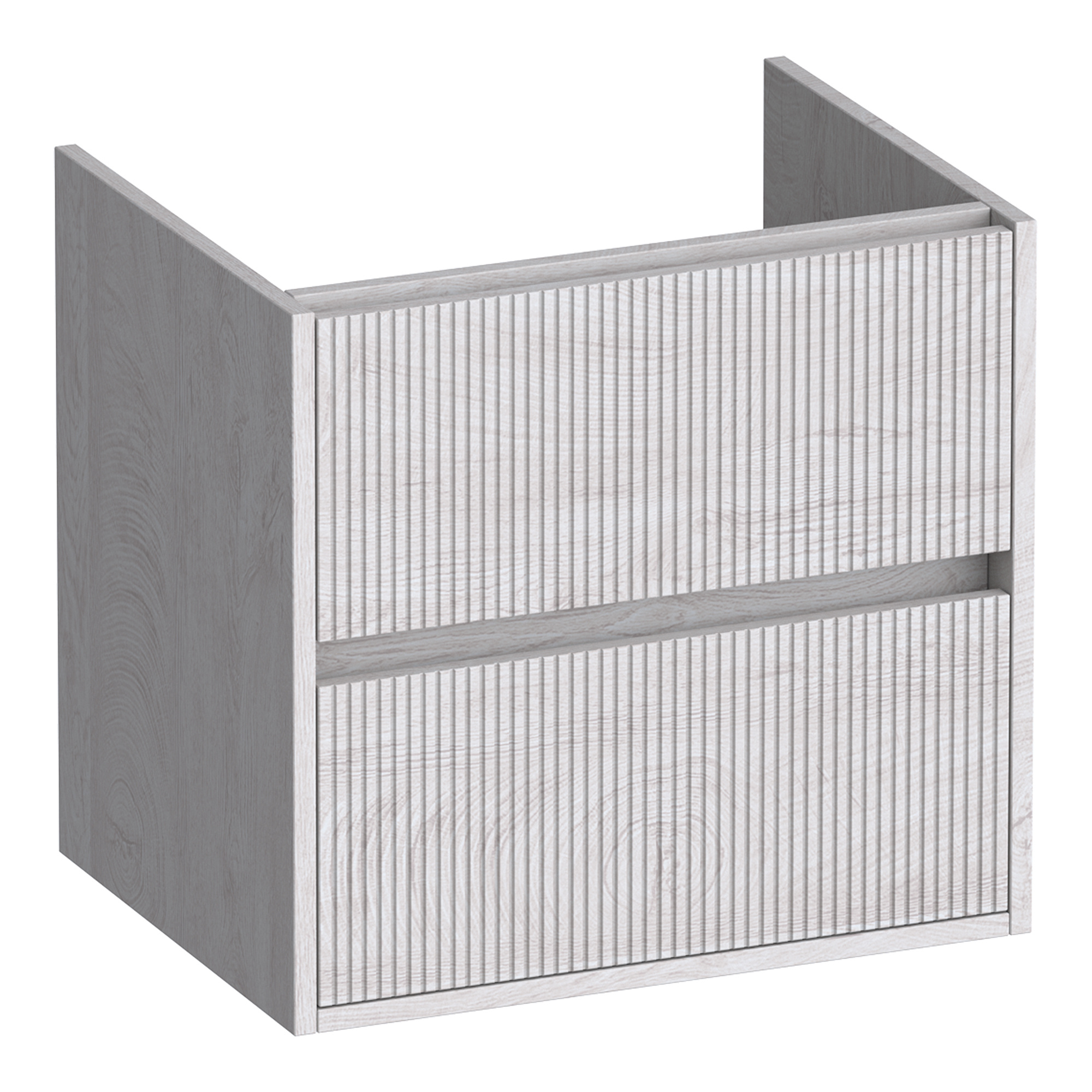 De Brauer Adore Wavy onderkast nodigt je uit om de badkamer een modern en uniek karakter te geven. Stel je voor dat je 's ochtends je badkamer binnenloopt, de zachte uitstraling van de Forest Seashell kleur begroet je, en de subtiele ribbels in het front trekken je aandacht. Het wandgemonteerde ontwerp houdt de vloer vrij en zorgt voor een rustige uitstraling. In een compacte badkamer, waar ruimte kostbaar is, biedt de onderkast met artikelnummer OK-ARW60FS een slimme oplossing met zijn twee greeploze lades die elegant en functioneel zijn.
