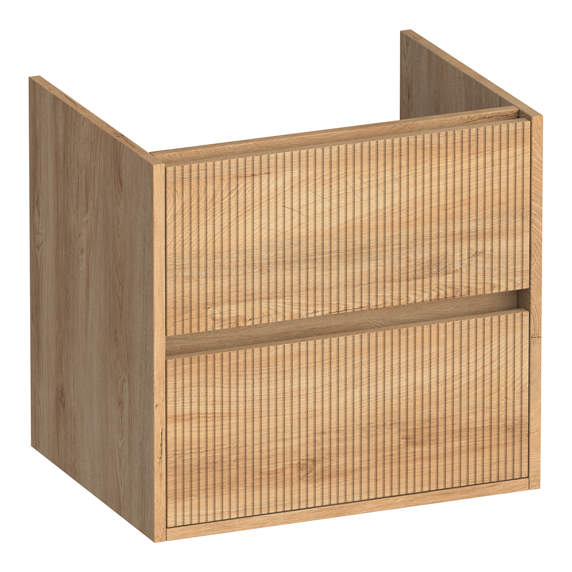 De Brauer Adore Wavy onderkast is een perfecte balans tussen modern design en praktische functionaliteit. Met zijn opvallende verticale ribbelpatroon en symmetrische indeling biedt deze kast een serene luxe die elke eigentijdse badkamer aanvult.