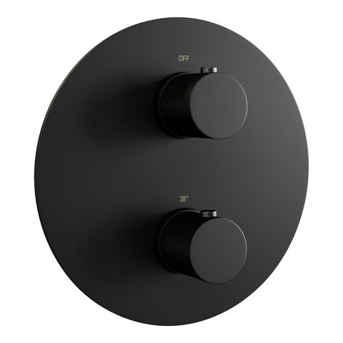 Brauer Black Carving 3-weg inbouwthermostaat rond met in- en afbouwdelen mat zwart | Mat zwart