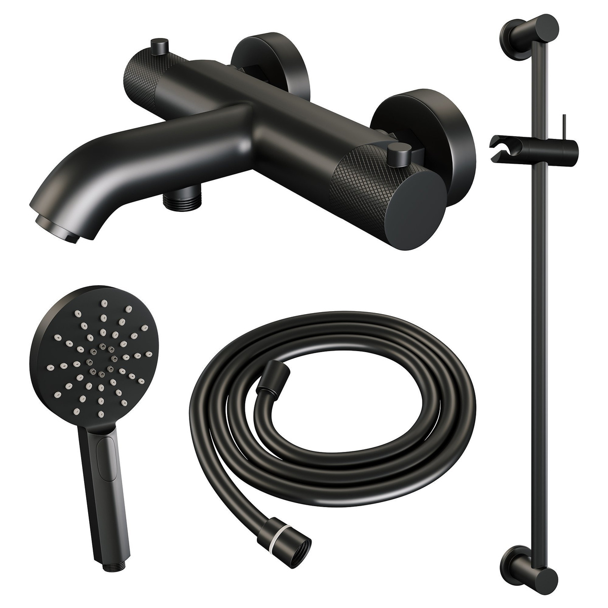 Brauer Carving badthermostaat met glijstangset - 3-standen handdouche Mat zwart | Mat zwart | Ronde Handdouche