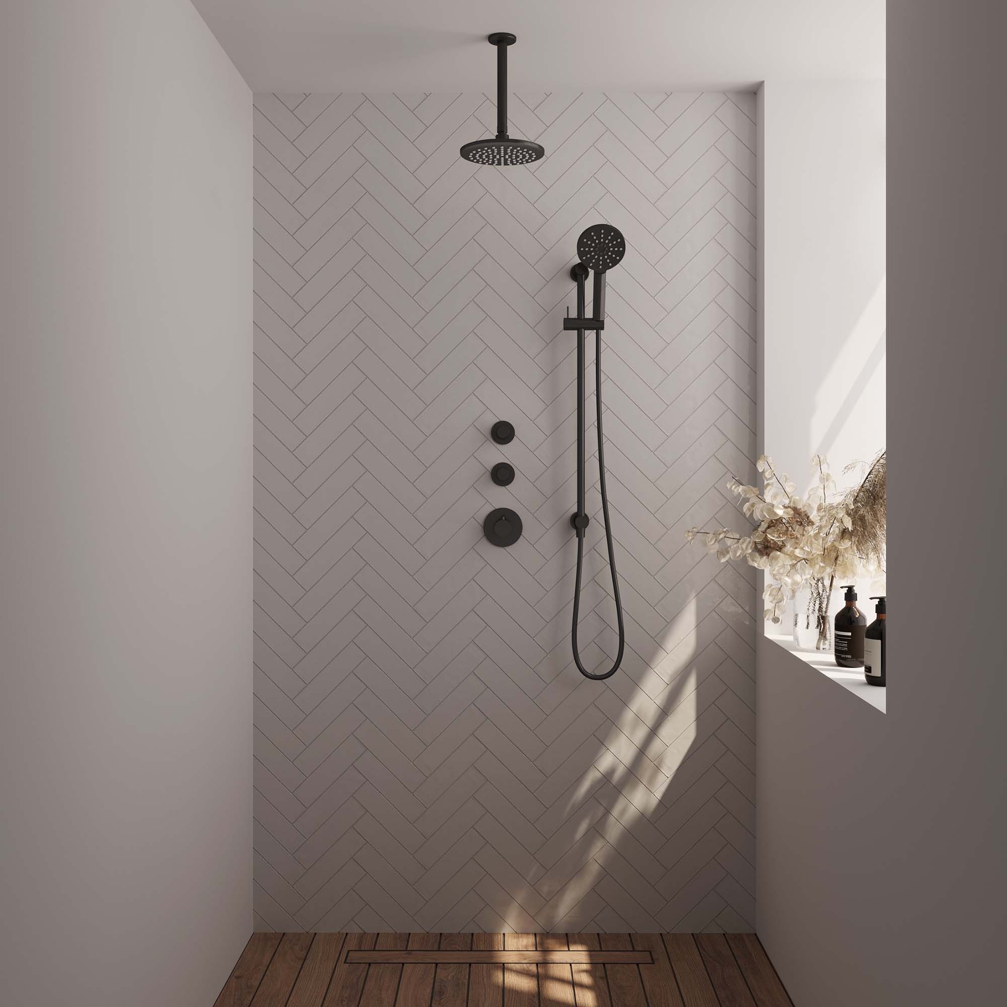 Offerte aanvraag voor Brauer Black Carving Regendoucheset inbouw | Mat zwart | Ronde Handdouche | 20 cm | Plafondbuis | Ja