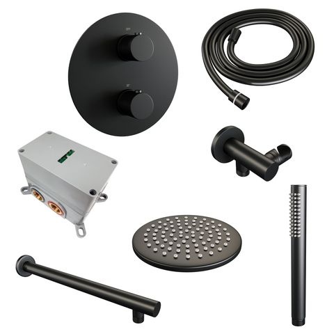 Brauer Black Carving thermostatische inbouw regendouche 3-weg rond SET 73 mat zwart