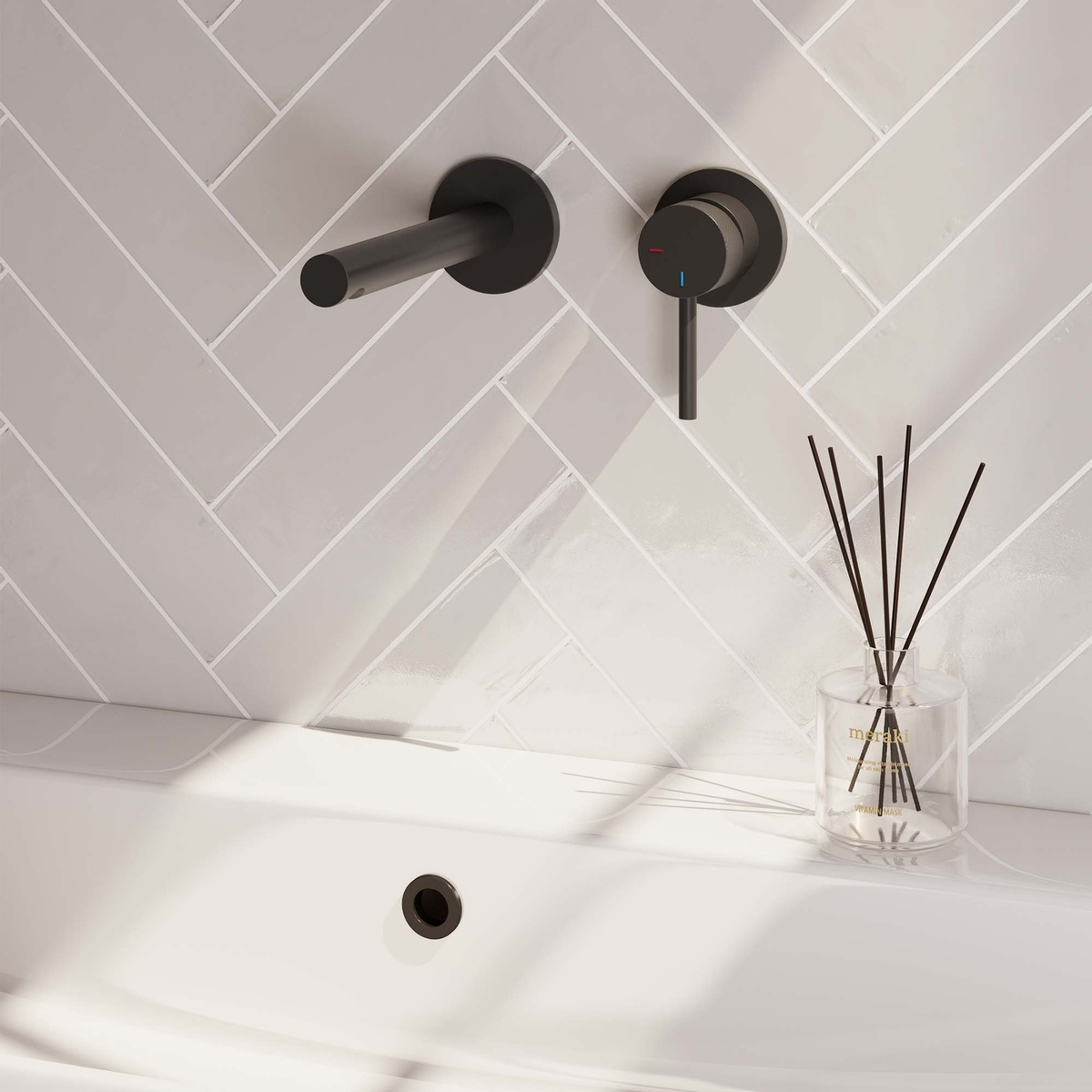 Brauer Black Carving inbouw wastafelmengkraan | Mat zwart | Rechte uitloop | Rozetten | Rechts