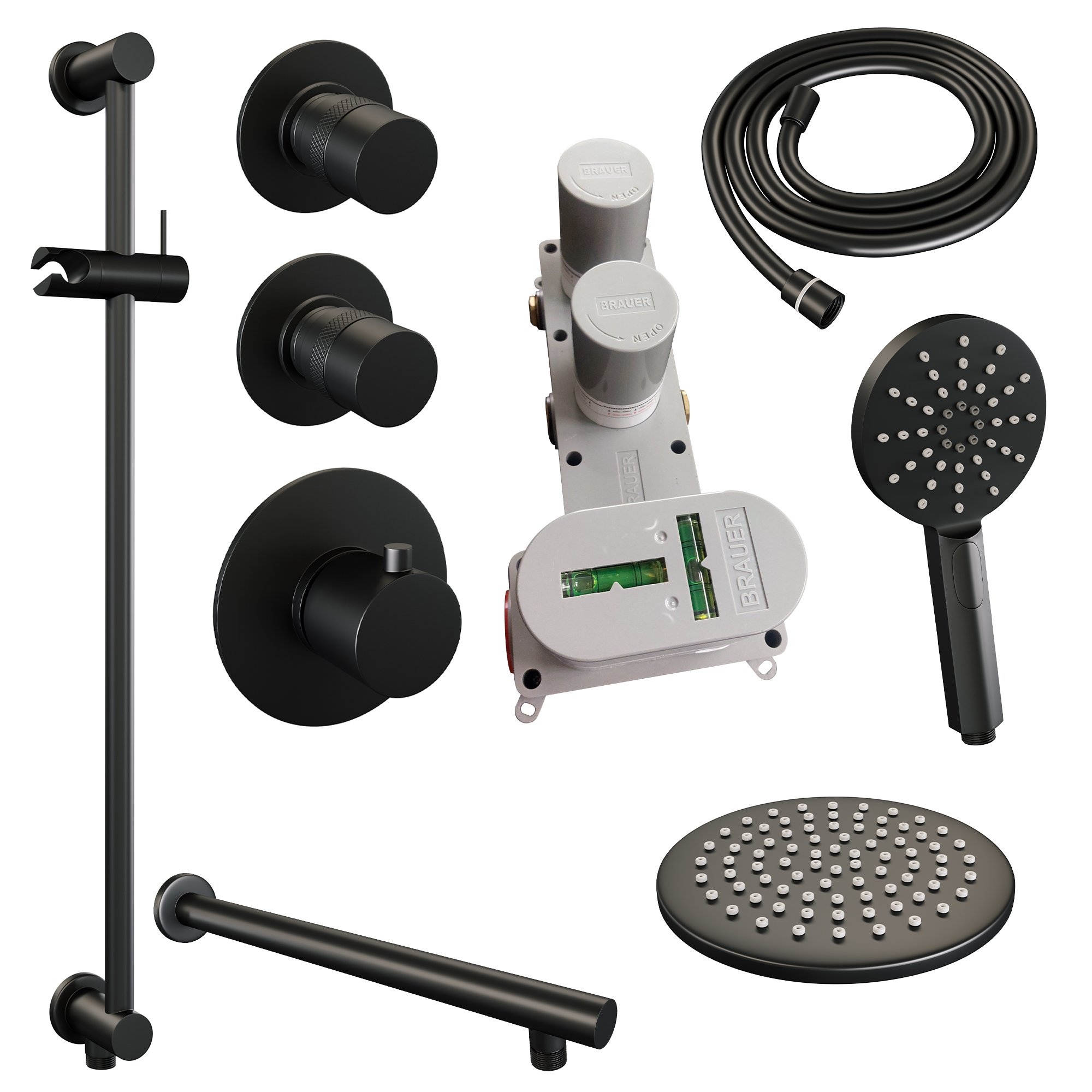 Brauer Black Edition thermostatische inbouw regendouche | Mat zwart | Ronde Handdouche | 20 cm | Rechte wandarm | Ja
