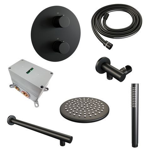 Brauer Black Edition thermostatische inbouw regendouche 3-weg rond SET 73 | Mat zwart | 20 cm | Nee | Rechte wandarm | Staafhanddouche