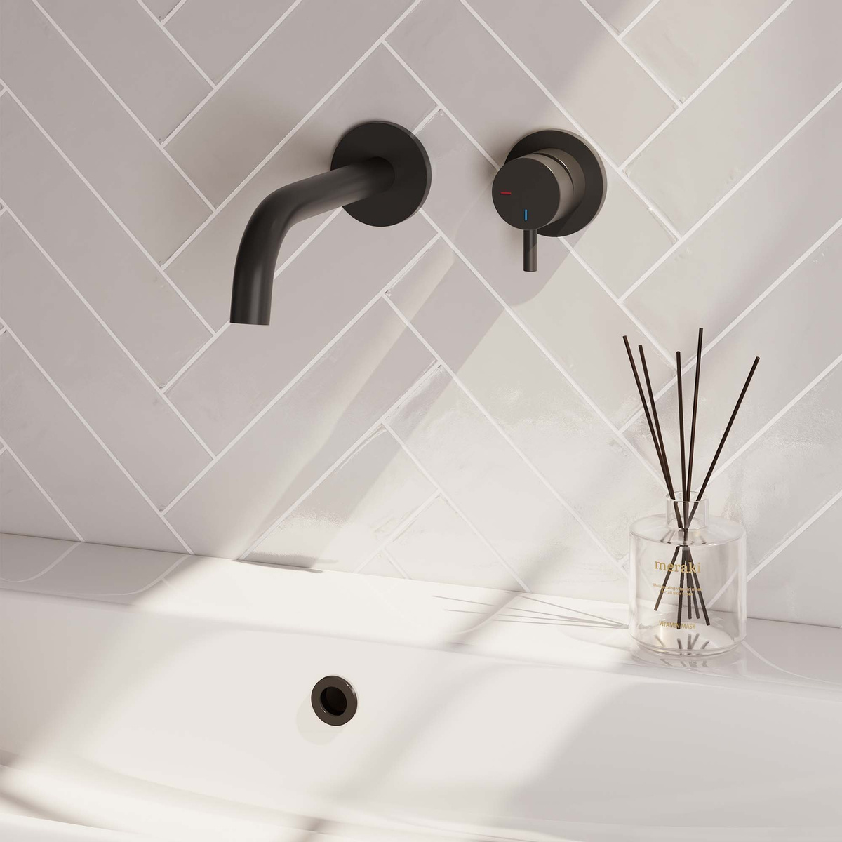De inbouw wastafelkraan is gemaakt van messing in een mat zwarte uitvoering. De Brauer kraan heeft een gebogen uitloop en een aparte, enkele greep waarmee je de temperatuur en het watervolume regelt. De kraan is een inbouwkraan en wordt dus gedeeltelijk in de wand weggewerkt. Dit zorgt voor een strakke en nette afwerking, waardoor de kraan perfect past bij een moderne badkamer. Het inbouwdeel dat in de muur wordt geplaatst, is inbegrepen bij de kraan. De kraan wordt afgewerkt met rozetten die ook zijn inbegrepen. Dankzij de 1/2"-aansluiting is de kraan eenvoudig te monteren.