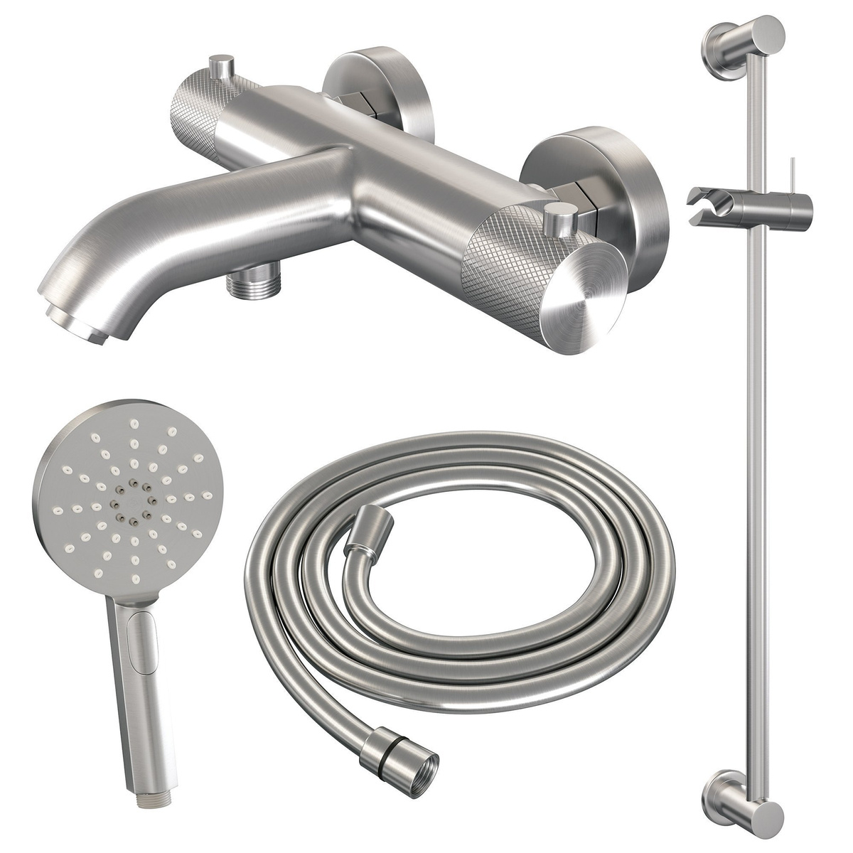 Brauer Carving badthermostaat met glijstangset - 3-standen handdouche Geborsteld RVS PVD | Geborsteld RVS | Ronde Handdouche