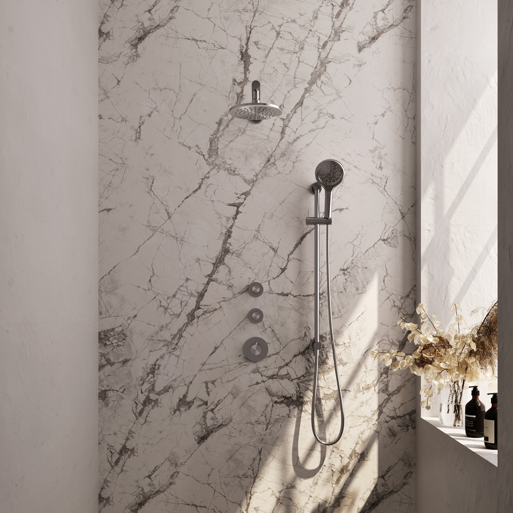 Offerte aanvraag voor Brauer Brushed Carving Regendoucheset inbouw | Geborsteld Rvs Pvd | Ronde Handdouche | 20 cm | Rechte Wandarm | Ja
