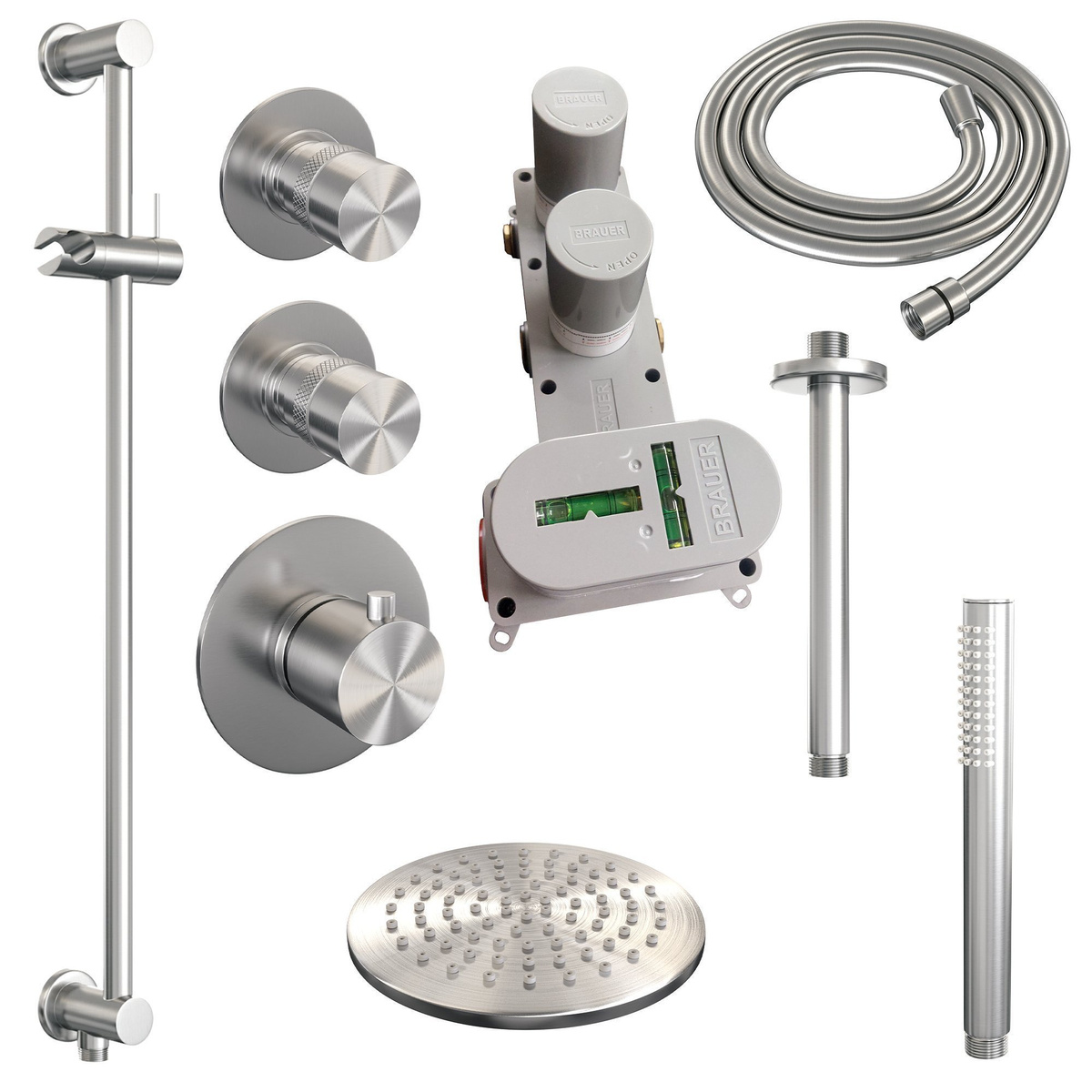 Brauer Brushed Edition Regendoucheset inbouw | Geborsteld RVS | Staafhanddouche | 20 cm | Plafondbuis | Ja