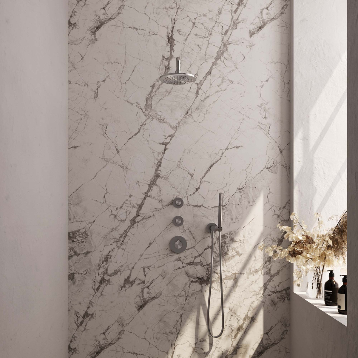 Upgrade je badkamer met de Brauer Brushed Edition Regendouchesets inbouw. Ervaar luxe en comfort bij elke douche.
