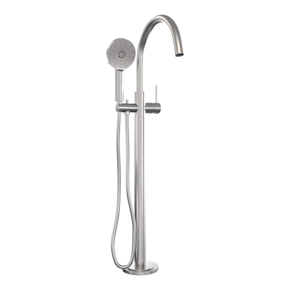 Deze moderne en vrijstaande badmengkraan uit de Brauer Brushed Edition serie geeft een luxe uitstraling aan de badkamer. De ronde zwanenhals in combinatie met de geborstelde RVS-kleur zorgt ervoor dat deze badmengkraan echt uitblinkt in jouw badkamer! Combineer de badkraan met een vrijstaand ligbad en creëer een ruimtelijke uitstraling in jouw badkamer.