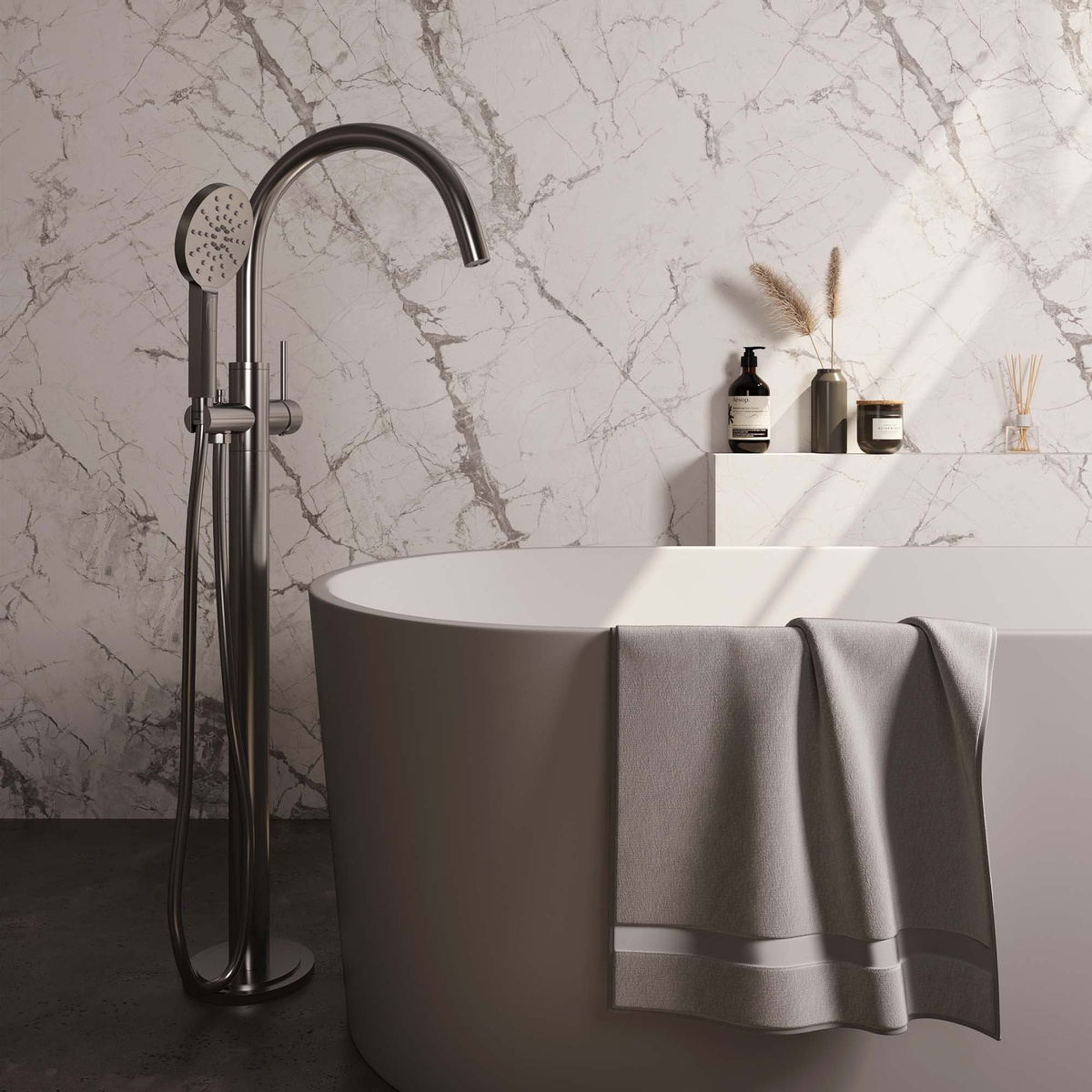 De Brauer Brushed Edition badkraan is een directe blikvanger in jouw badkamer. Daarnaast is deze badkraan voorzien van een duurzame PVD-coating. Deze coating biedt uitstekende bescherming tegen slijtage en corrosie, en zorgt ervoor dat het materiaal en de kleur extra lang behouden blijven.
