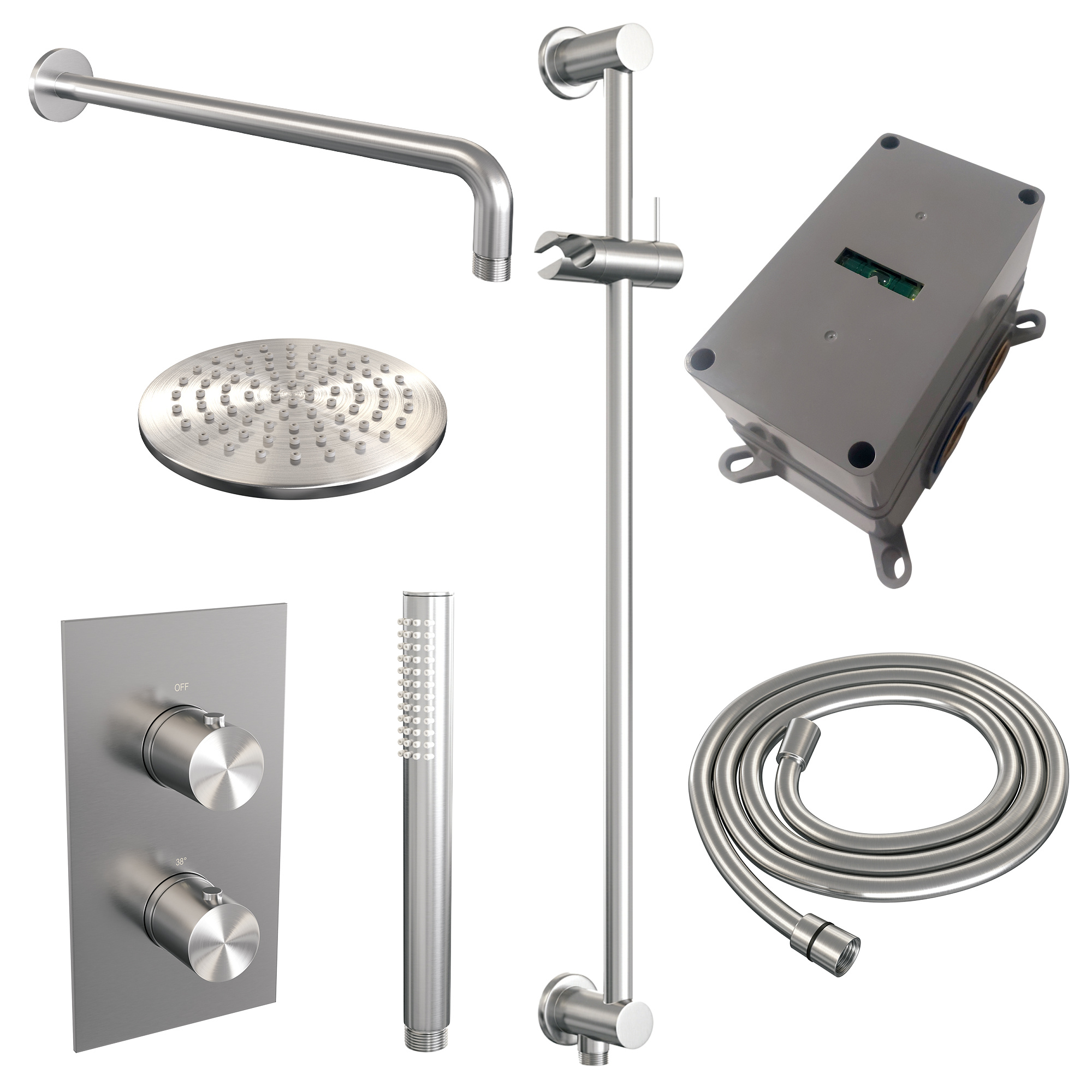 Offerte aanvraag voor Brauer Brushed Edition Regendoucheset inbouw | Geborsteld RVS | Staafhanddouche | 20 cm | Gebogen wandarm | Ja