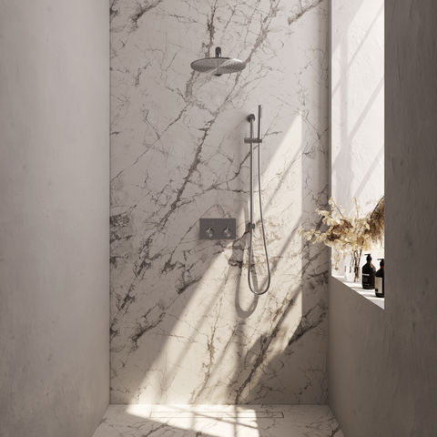 Deze inbouw regendoucheset is een slimme keuze als je een moderne, opgeruimde uitstraling wilt en de douche netjes in de muur wilt verwerken. Dit vraagt wel om wat meer voorbereiding bij de installatie, omdat het inbouwdeel in de muur geplaatst wordt. De set is vooral handig als je graag zowel een hoofddouche als handdouche gebruikt. Heb je liever verschillende straalsoorten tijdens het douchen, dan is deze set minder geschikt. Door de verschillende kleurmogelijkheden kun je de set goed afstemmen op jouw badkamerstijl.