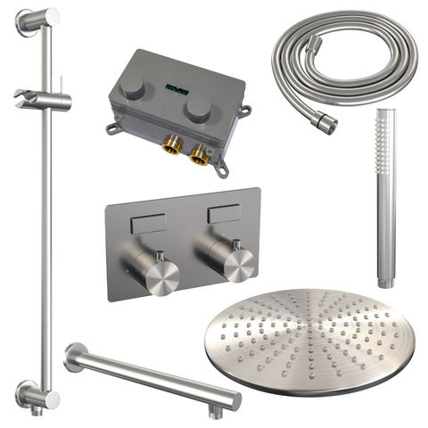 Offerte aanvraag voor Brauer Brushed Edition thermostatische inbouw regendouche met drukknoppen SET 62 | Geborsteld RVS | 30 cm | Ja | Rechte wandarm | Staafhanddouche