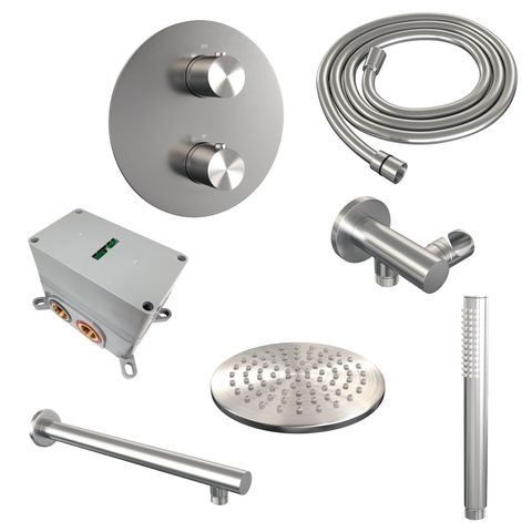 Brauer Brushed Edition thermostatische inbouw regendouche 3-weg rond SET 73 | Geborsteld RVS | 20 cm | Nee | Rechte wandarm | Staafhanddouche