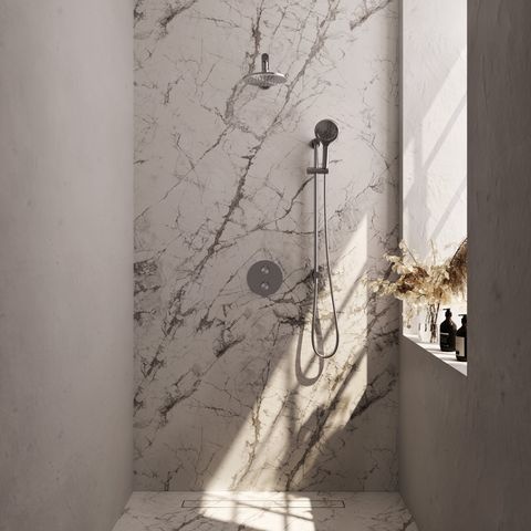 Deze inbouw doucheset is vooral geschikt als je een nieuwe badkamer laat plaatsen of een grondige renovatie doet, omdat het inbouwdeel in de muur verwerkt moet worden. Het is een goede keuze als je een opgeruimde uitstraling wilt en graag verschillende douche-ervaringen hebt dankzij de regendouche en handdouche met drie standen. Houd er rekening mee dat je niet meerdere wateruitgangen tegelijk kunt gebruiken; je schakelt altijd tussen hoofddouche en handdouche. De verschillende kleuropties bieden mogelijkheden om de set af te stemmen op jouw badkamerstijl. Voor bestaande badkamers zonder inbouwvoorzieningen is deze set minder praktisch.