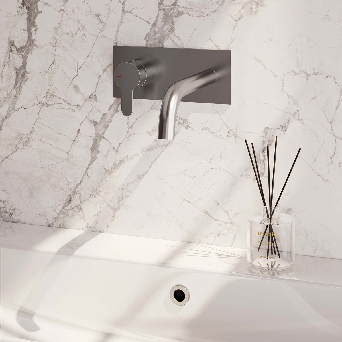 De gebogen uitloop zorgt voor een soepele waterstroom en geeft je wastafel een luxueuze uitstraling. De platte en smalle hendel is ergonomisch ontworpen voor comfortabel gebruik en maakt het eenvoudig om de watertemperatuur en -druk naar wens aan te passen.