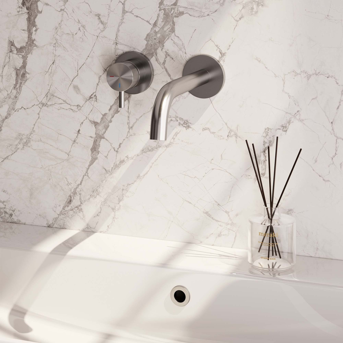 Brauer Brushed Edition inbouw wastafelmengkraan | Geborsteld RVS | Gebogen uitloop | Rozetten | Kort smal | Links