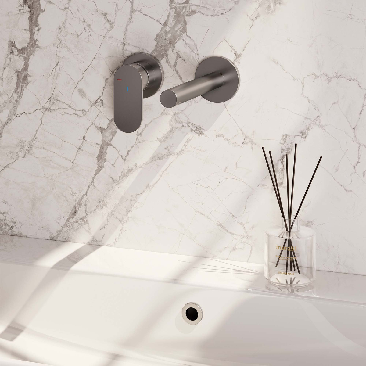 De rechte uitloop zorgt voor een minimalistische en eigentijdse uitstraling in je badkamer. De breed platte hendel biedt comfortabele bediening en voegt een vleugje moderniteit toe aan de kraan.