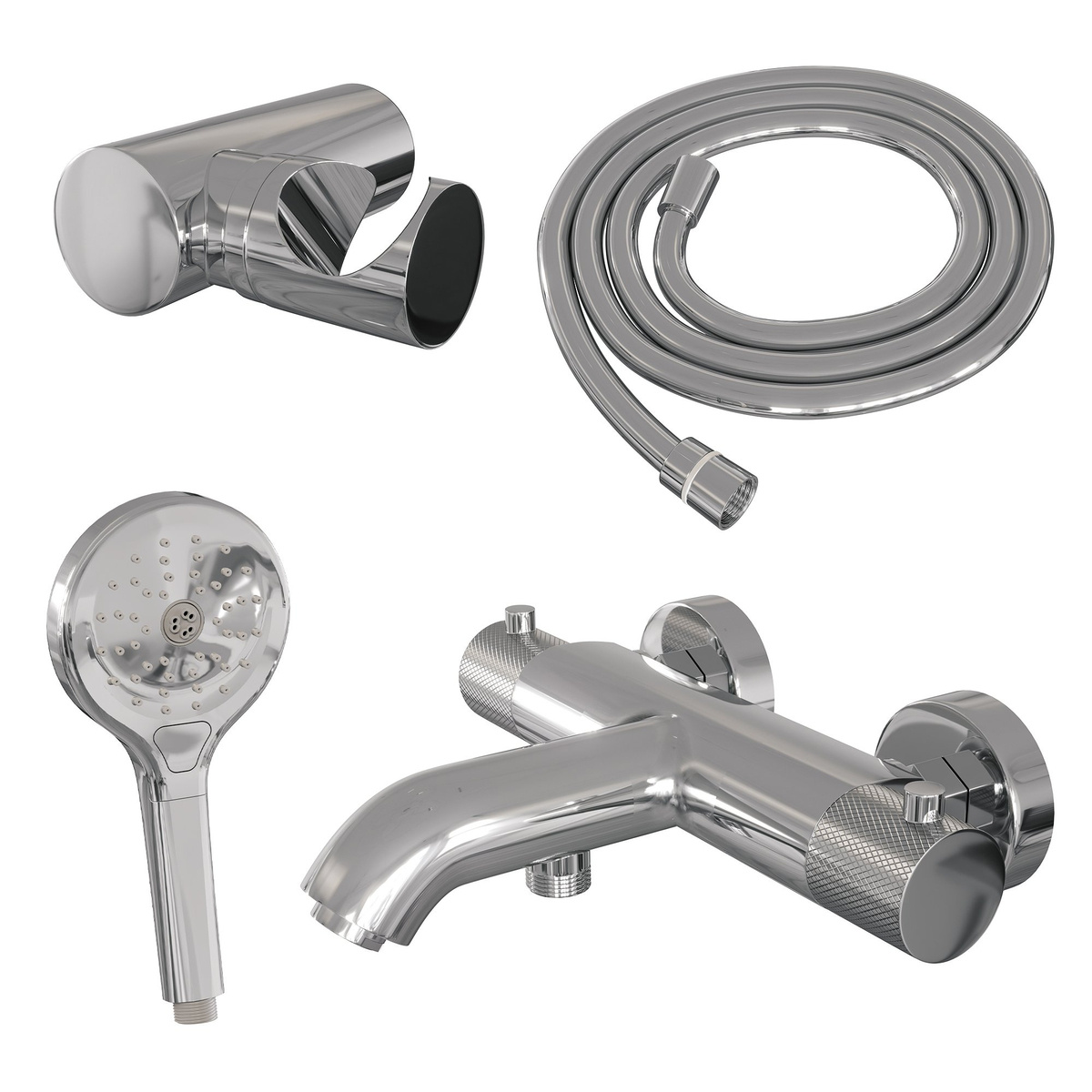 Brauer Carving badthermostaat met badset - staafhanddouche Chroom | Chroom | Ronde Handdouche