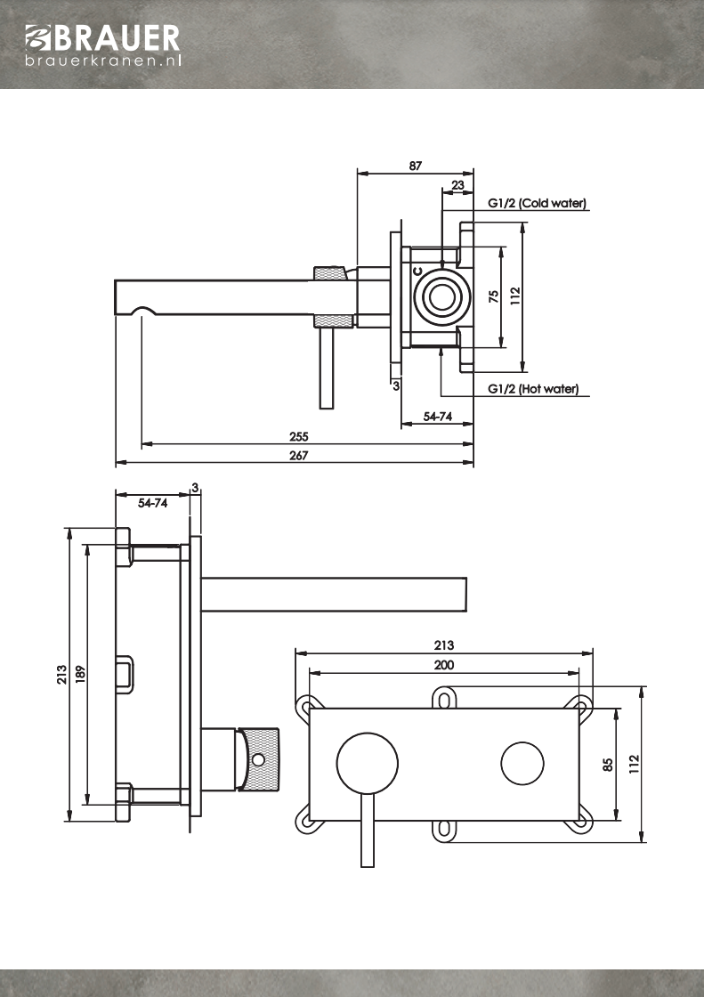 Offerte aanvraag voor Brauer Chrome Carving inbouw wastafelmengkraan | Chroom | Rechte uitloop | Achterplaat | Links