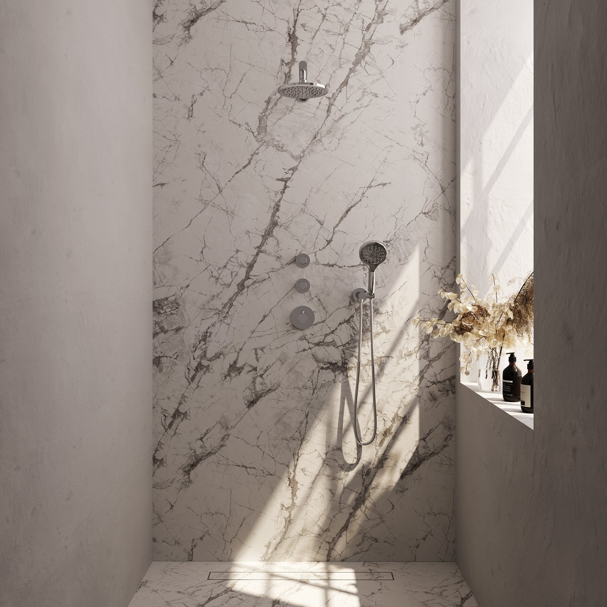 Met de Brauer Chrome Carving Regendoucheset ervaar je ultiem comfort tijdens het douchen. De royale hoofddouche van 20 cm zorgt voor een heerlijke regenbui die je hele lichaam bedekt. De 3 carving knoppen stellen je in staat om de waterstroom aan te passen naar jouw voorkeur. De handdouche met drie standen biedt extra flexibiliteit en maakt het mogelijk om gericht te douchen op specifieke delen van je lichaam.