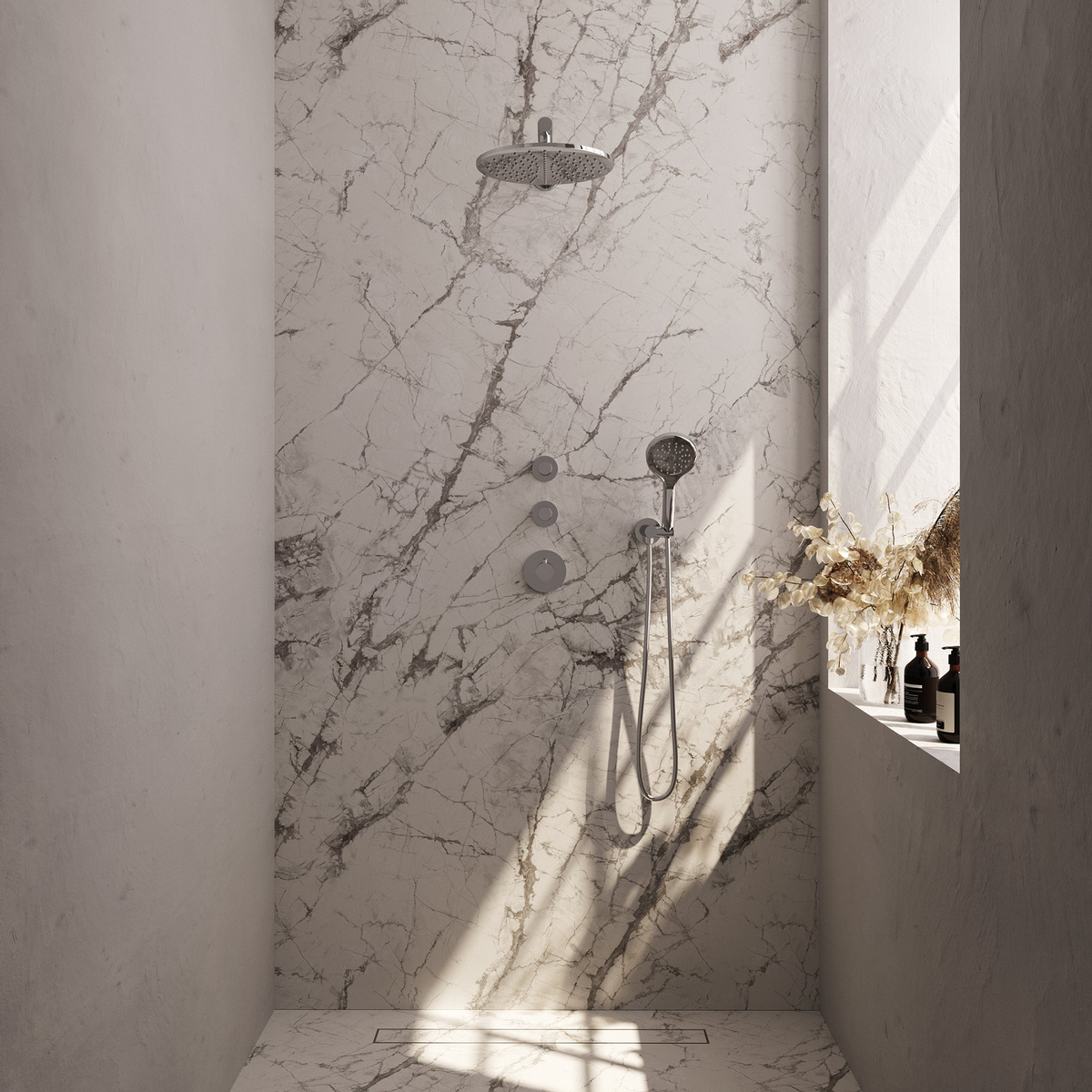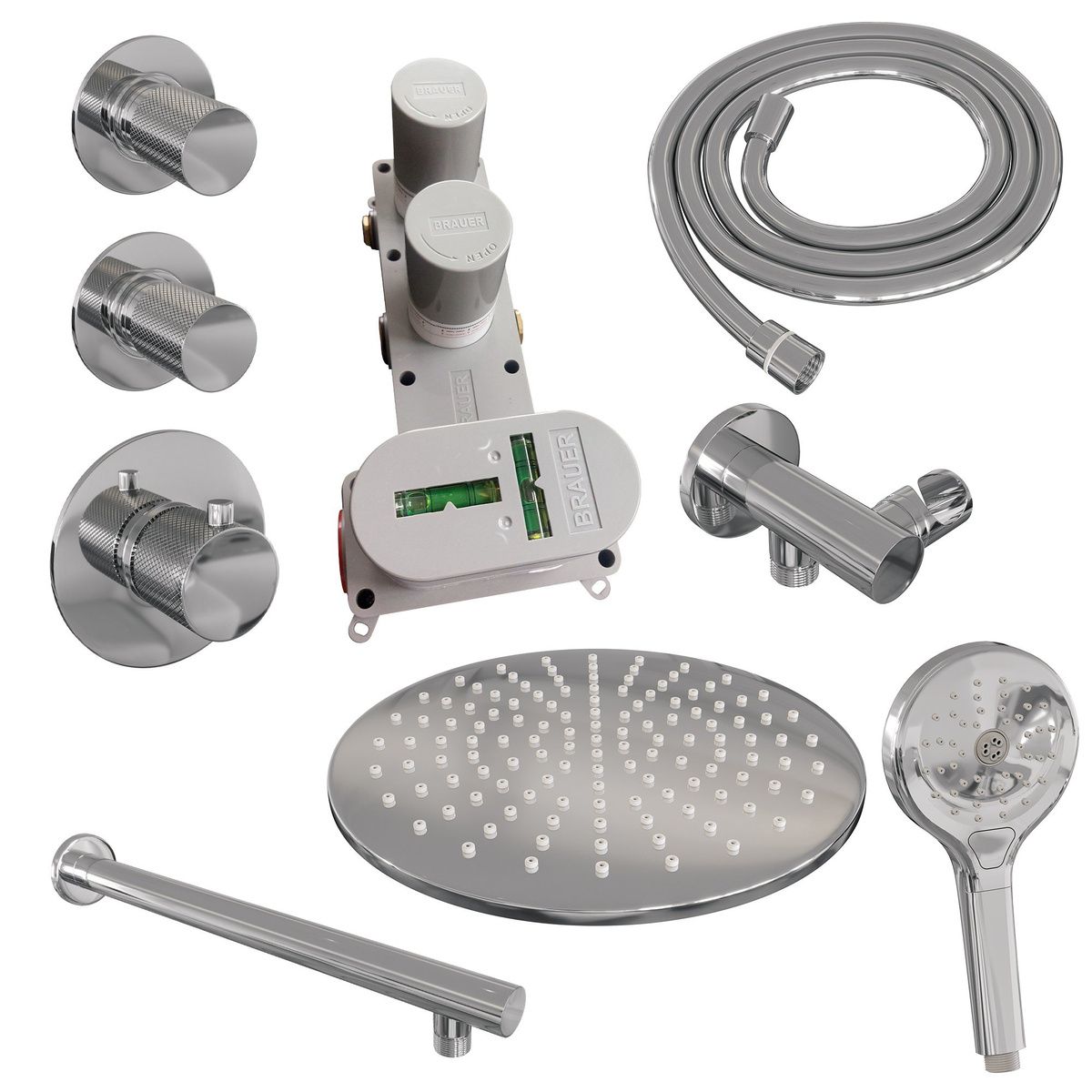 De Brauer Chrome Carving Regendoucheset is voorzien van een hoogwaardige chroomafwerking. Deze glanzende coating geeft de doucheset een elegante uitstraling en past perfect in elke moderne badkamer. Het chroomoppervlak is duurzaam, gemakkelijk schoon te maken en bestand tegen corrosie, waardoor je jarenlang kunt genieten van een schitterende douche-ervaring.