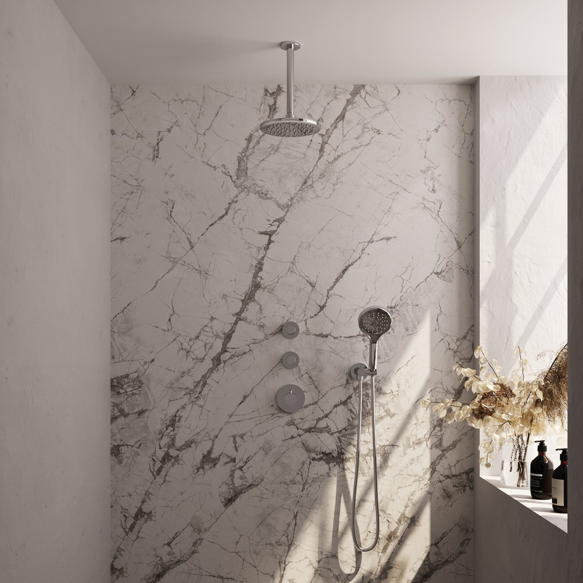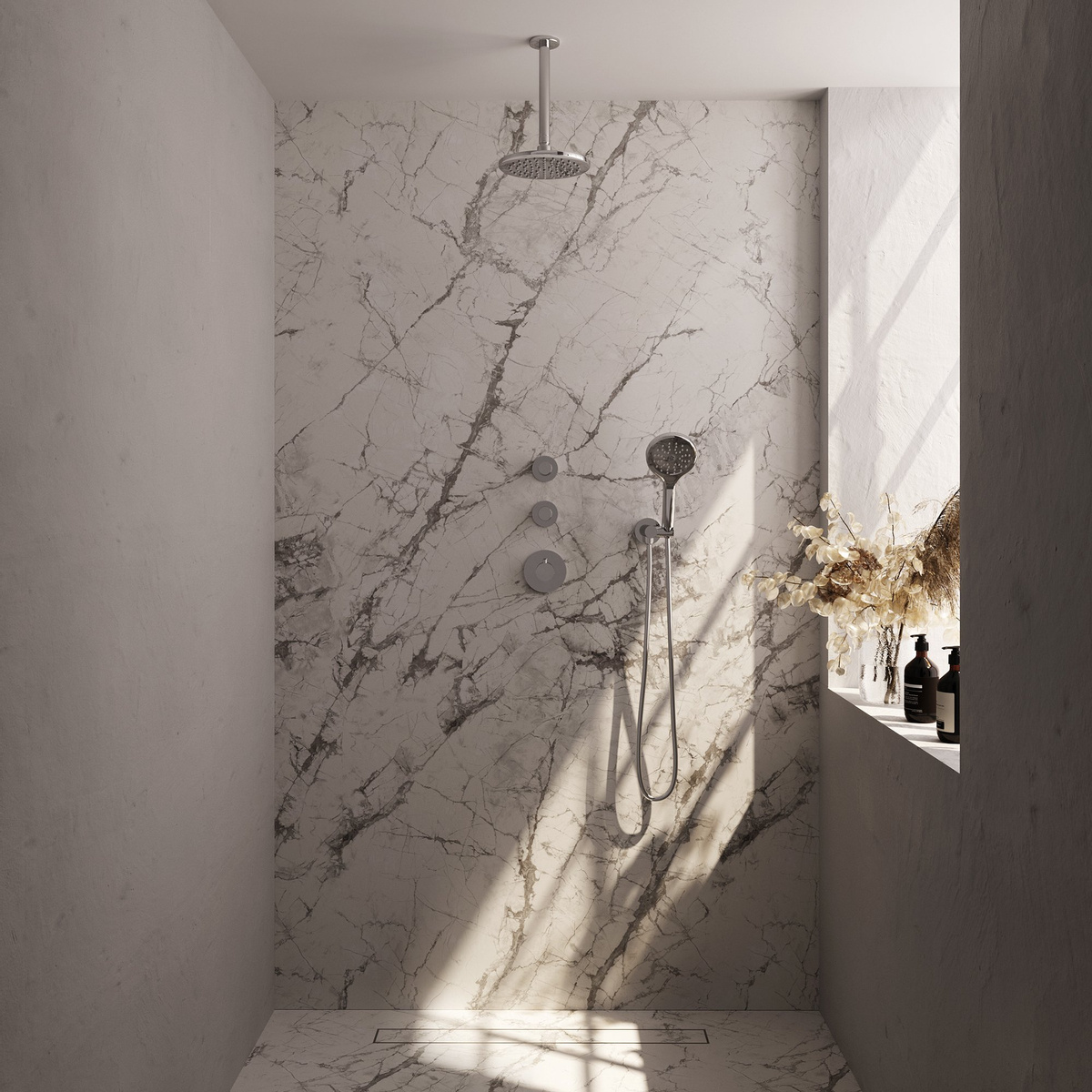 Met de Brauer Chrome Carving Regendoucheset geniet je van een verfrissende en ontspannende douche-ervaring. De hoofddouche van 20cm zorgt voor een breed en gelijkmatig waterdebiet, terwijl de plafondarm zorgt voor een optimale positionering van de douchekop. Met de 3 carving knoppen kun je eenvoudig de waterstroom naar wens aanpassen. De handdouche met drie standen biedt extra flexibiliteit en comfort.