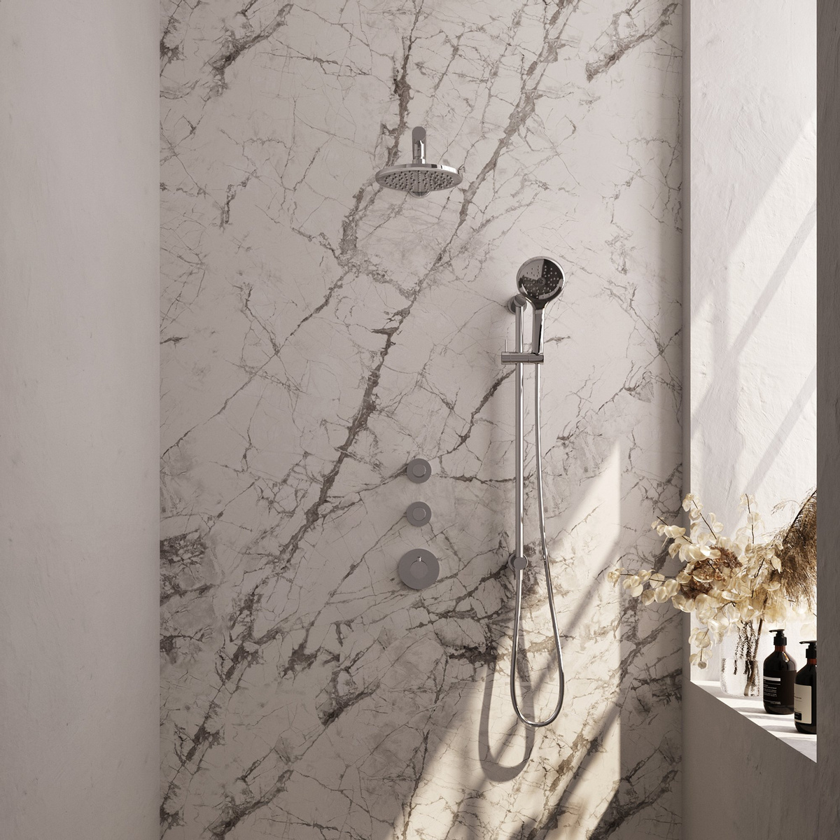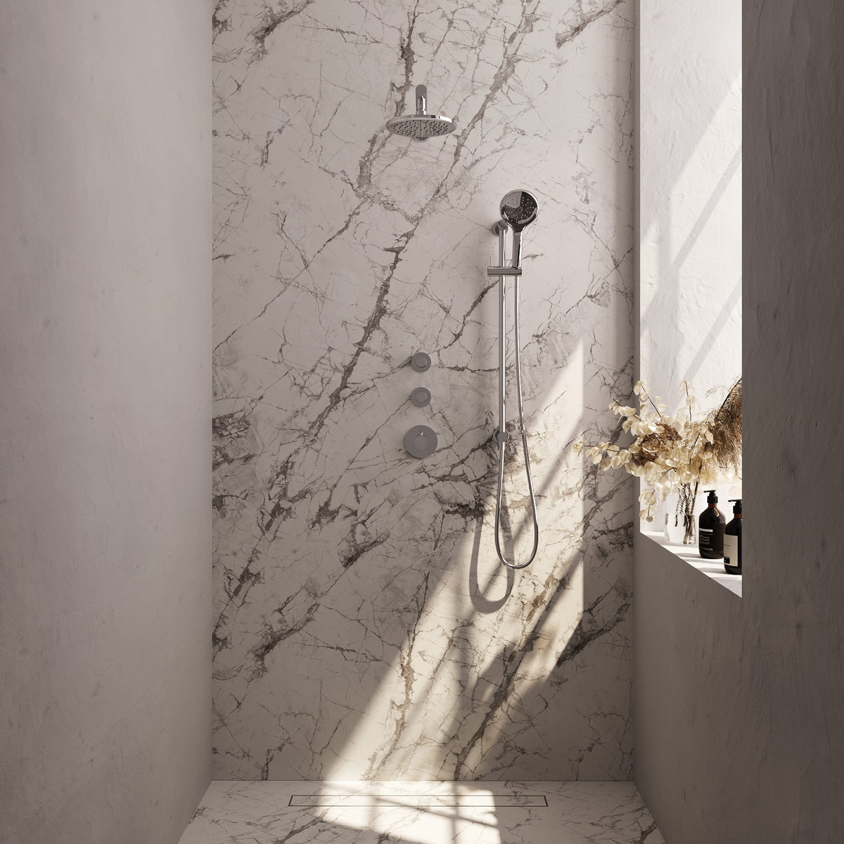 Met de 20 cm hoofddouche van de Brauer Chrome Carving Regendoucheset geniet je van een verkwikkende regendouche. De 3 carving knoppen bieden jou de mogelijkheid om de waterstralen naar jouw persoonlijke voorkeur in te stellen. De handdouche met 3 standen zorgt voor extra flexibiliteit tijdens het douchen.