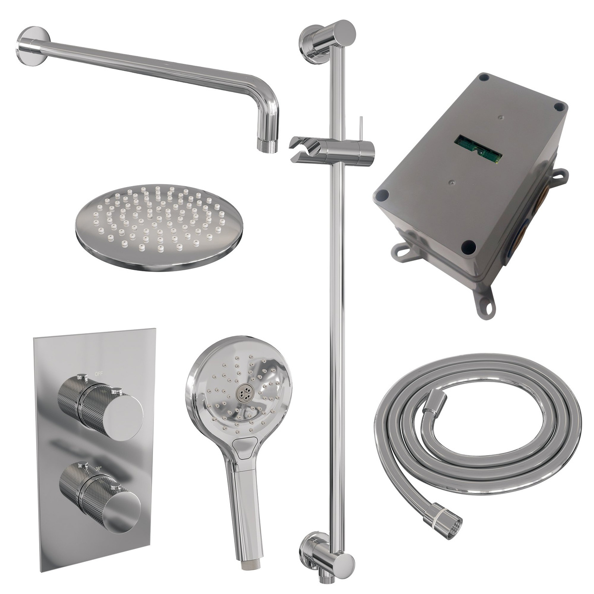 Offerte aanvraag voor Brauer Chrome Carving Regendoucheset inbouw | Chroom | 20 cm | Ja | Gebogen wandarm | Ronde Handdouche