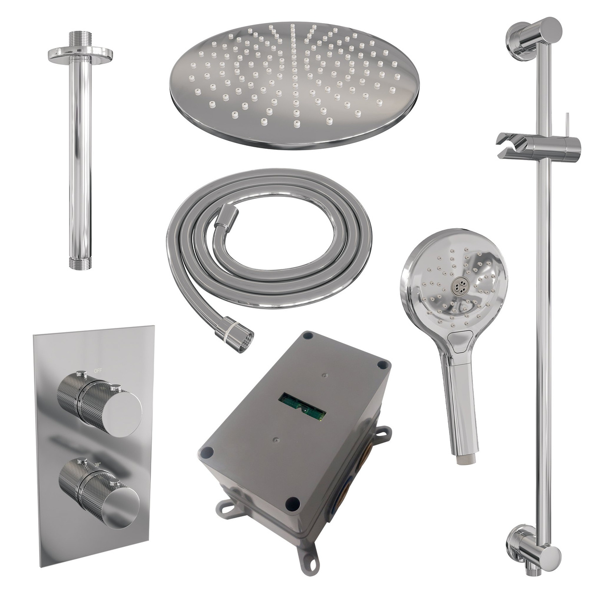 Offerte aanvraag voor Brauer Chrome Carving Regendoucheset inbouw | Chroom | 30 cm | Ja | Plafondbuis | Ronde Handdouche