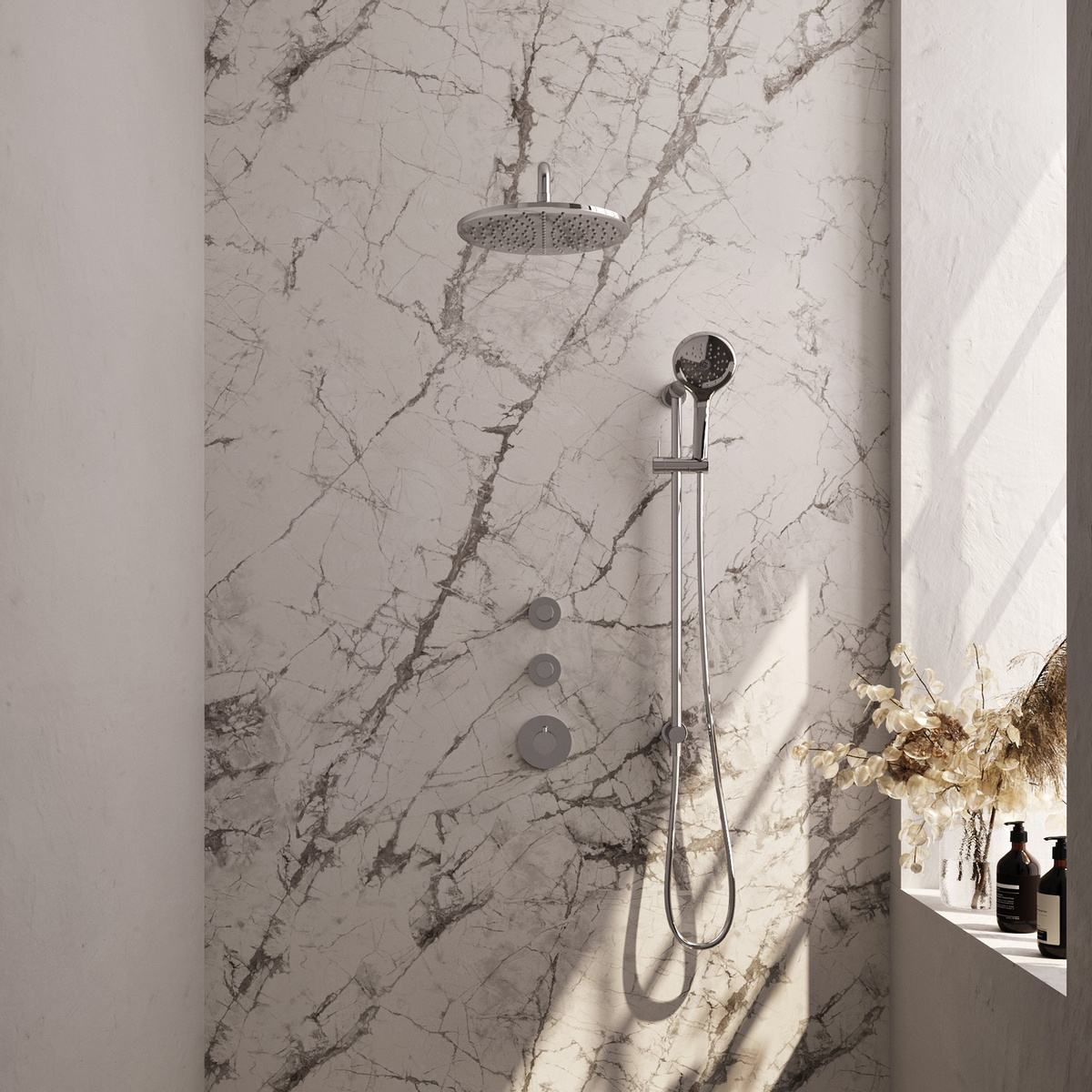 Met de Brauer Chrome Carving Regendoucheset inbouw haal je een combinatie van stijl en functionaliteit in huis. Geniet van een verfrissende en ontspannende douche-ervaring met de ruime hoofddouche en pas de hoogte en positie van de handdouche eenvoudig aan met de geïntegreerde glijstang. De chroom afwerking voegt een vleugje elegantie toe aan je badkamer. Upgrade je doucheruimte met deze hoogwaardige regendoucheset.