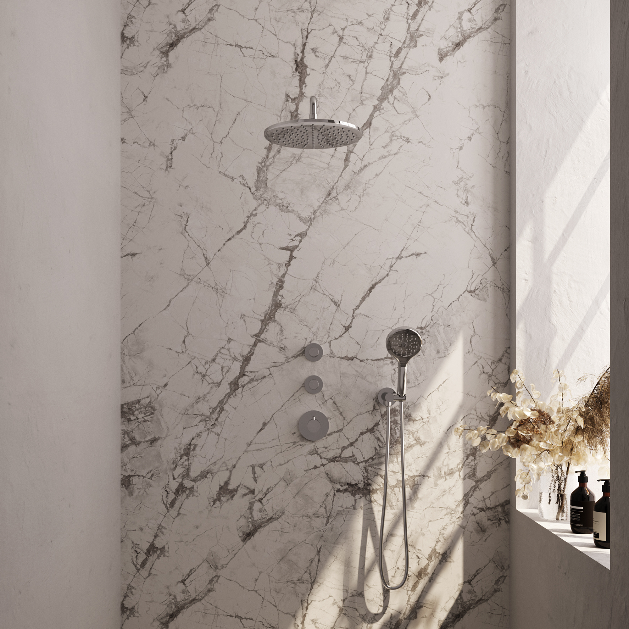 Offerte aanvraag voor Brauer Chrome Carving Regendoucheset inbouw | Chroom | Ronde Handdouche | 30 cm | Gebogen wandarm | Nee