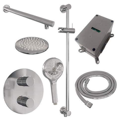 Brauer Chrome Carving thermostatische inbouw regendouche 3-weg rond SET 91 met 20 cm douchekop en rechte muurarm