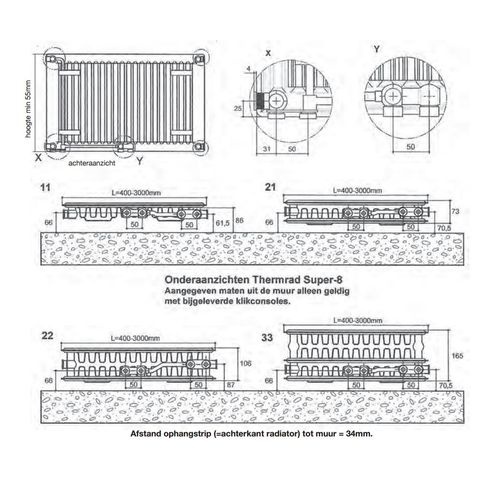 Thermrad Super 8 Compact paneelradiator type 21 - 260 x 40 cm (L x H)