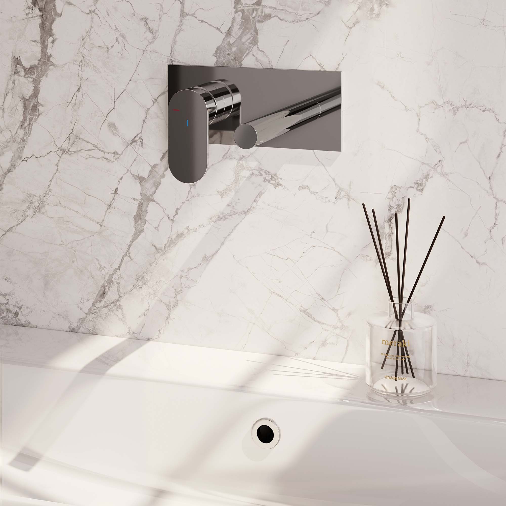 Brauer Chrome Edition inbouw wastafelmengkraan | Chroom | Rechte uitloop | Achterplaat | Breed plat | Links