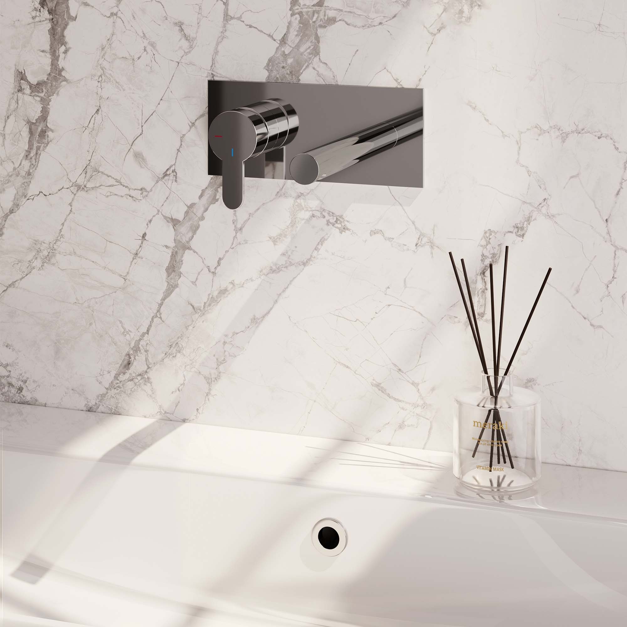 Brauer Chrome Edition inbouw wastafelmengkraan | Chroom | Rechte uitloop | Achterplaat | Smal plat | Links