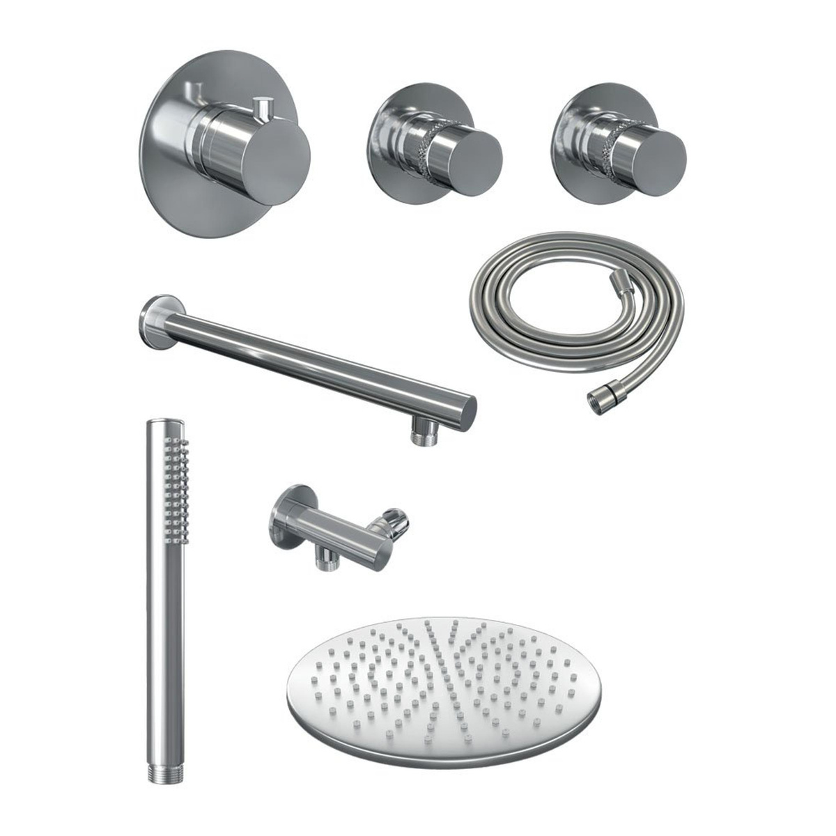 Brauer Chrome Edition Regendoucheset inbouw - hoofddouche 30cm - 3 gladde knoppen - rechte wandarm - Staafhanddouche - Chroom
