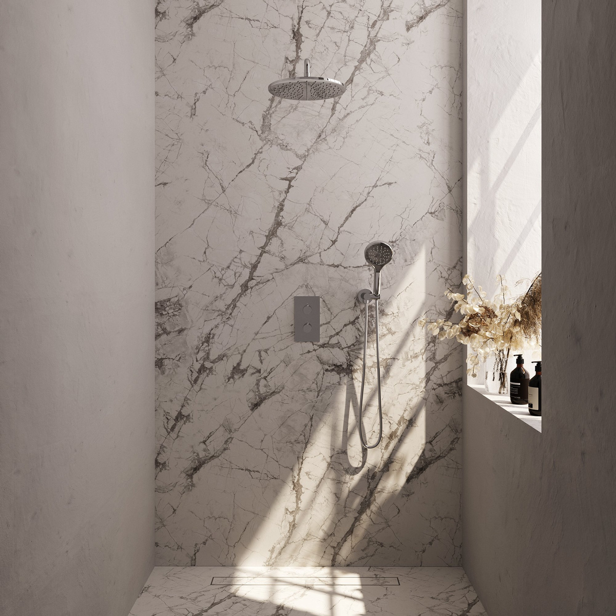 Op zoek naar extra luxe in de badkamer? Kies voor een inbouw regendouche in tijdloos chroom! Een regendouche geeft het gevoel van een zomerse regenbui op de huid, waardoor je compleet ontspant. De Brauer Chrome Edition regendouche is van alle gemakken voorzien: omstel thermostaat, handdouche en regendouche van 30 cm met muurarm.