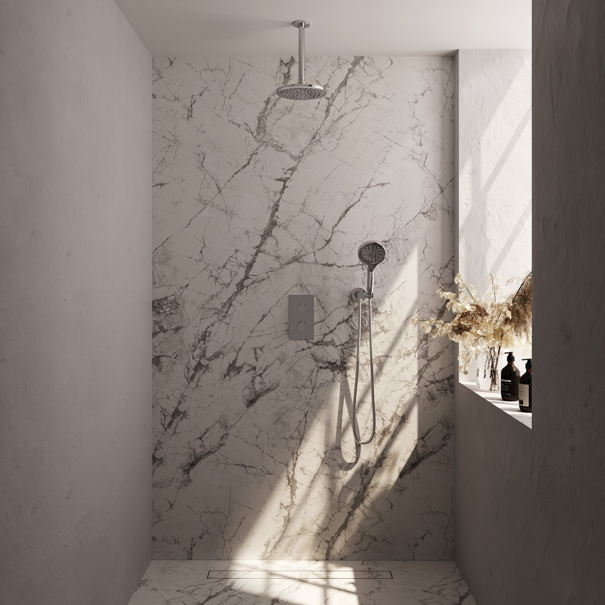 Op zoek naar extra luxe in de badkamer? Kies voor een inbouw regendouche in tijdloos chroom! Een regendouche geeft het gevoel van een zomerse regenbui op de huid, waardoor je compleet ontspant. De Brauer Chrome Edition regendouche is van alle gemakken voorzien: omstel thermostaat, handdouche en regendouche van 20 cm met plafondarm.