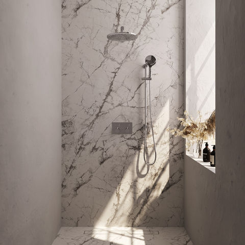 Deze inbouw regendouche is vooral geschikt als je een nieuwe badkamer maakt of grondig renoveert, omdat het inbouwdeel in de muur verwerkt wordt. Heb je beperkte ruimte of wil je niet hakken en breken, dan is een opbouwdouche misschien praktischer. De set is handig als je graag verschillende douchestralen gebruikt of de handdouche flexibel wilt kunnen positioneren. Door de chroomafwerking past hij goed in een neutrale of moderne badkamer. Wil je liever een andere kleur, dan zijn er meerdere afwerkingen beschikbaar.