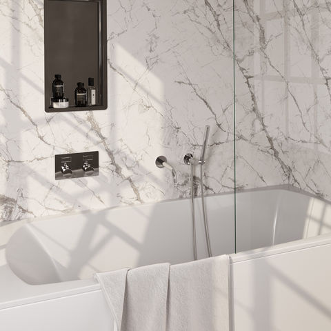 Deze inbouw badkraan is een goede keuze als je een moderne, opgeruimde uitstraling wilt en je het prettig vindt om alles netjes in de muur weg te werken. Het is vooral handig als je meerdere waterpunten wilt gebruiken, zoals een baduitloop en een handdouche. Houd er wel rekening mee dat je bij inbouwkranen vooraf goed moet plannen, omdat de installatie in de muur verwerkt wordt. Als je liever een kraan op de muur hebt of niet wilt breken in de badkamer, is een opbouwkraan misschien praktischer.