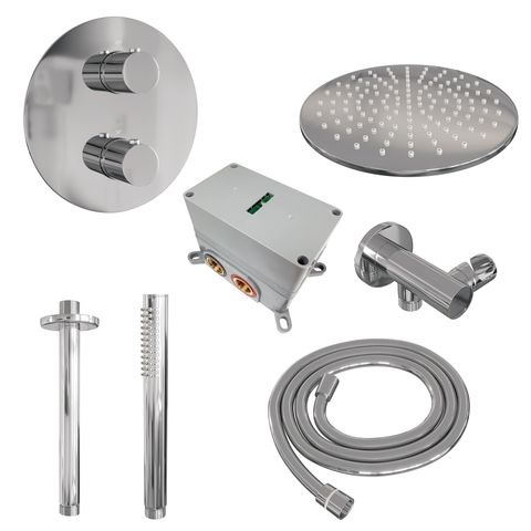 Offerte aanvraag voor Brauer Chrome Edition thermostatische inbouw regendouche 3-weg rond SET 78 | Chroom | 30 cm | Nee | Plafondbuis | Staafhanddouche